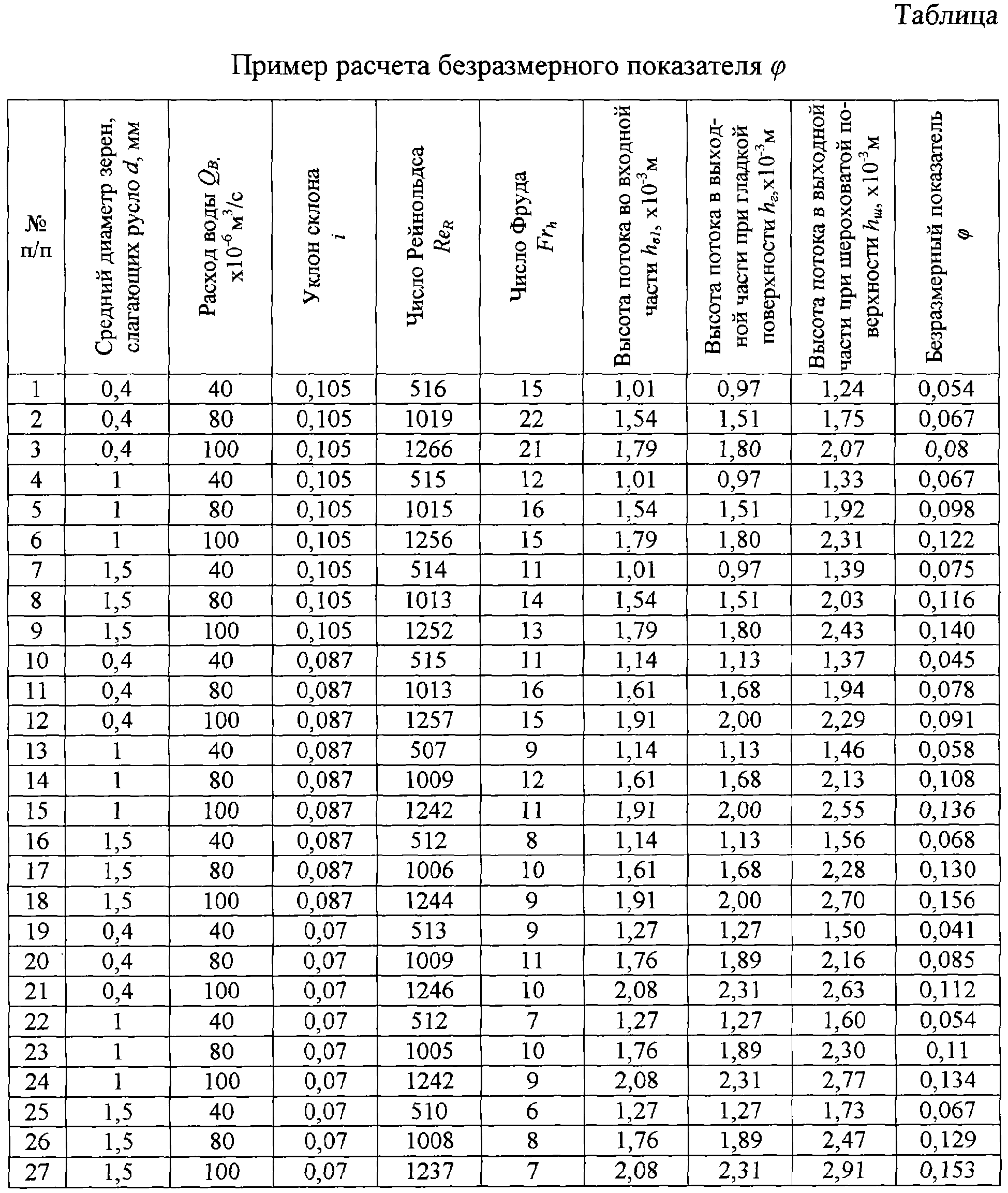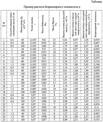 1. Способ определения гидравлических потерь на трение, включающий моделирование процесса взаимодействия потока воды с шероховатой поверхностью, измерение высоты потока жидкости, отличающийся тем, что при проведении опытов с гладкой и шероховатой поверхностями с использованием наклонного лотка измеряют высоту потока воды с помощью микрометра с мерной иглой во входной и выходной частях лотка, определяют расход воды, замеряют ширину лотка, а безразмерный показатель , по которому производят оценку гидравлических потерь на трение, определяют по формуле