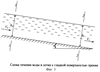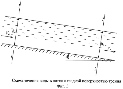 Рассмотрим течение воды в лотке с шероховатой поверхностью трения (фиг.2).