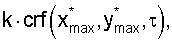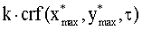 поиск точки с наибольшим значением функции crf(х*, y*, ) для каждого момента времени ;