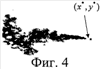 Четвертый этап способа согласно изобретению основан на том, что источник утечки не движется в течение какого-то времени. Исследуется временная стабильность всех возможных источников. Это выполняется путем поиска в списке кандидатов таких возможных источников, которые имели то же самое местоположение в пространстве в ряде предыдущих кадров. Если среди существующих возможных источников некоторая точка достаточно устойчива, то есть за какое-то время ее местоположение не изменяется или изменяется минимально, то она рассматривается как источник утечки. Таким образом, точка, которая является устойчивой при изменении переменной времени , представляет собой возможный источник утечки. Для точки , которая будет сочтена устойчивой по , в момент 1 должна существовать по меньшей мере одна точка в каждом ряду точек между [ 1– , 1], которая принадлежит открытому шару , где r – постоянное расстояние, измеренное с помощью некоторой нормы, например нормы L2, L1 или L . Ситуация, когда оставлены только точки, стабильные во времени, показана на фиг.4. Как видно из фиг.4, найдена только одна точка, то есть крайняя справа точка, обозначенная (х*, y*), и поэтому эту точку рассматривают как точечный источник утечки газа.