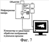 на фиг.6 показана форма выполнения оборудования для определения местоположения точечного источника с использованием корреляционного газового фильтра и двух инфракрасных камер, в одной из которых газовая ячейка и объектив установлены вместе;