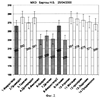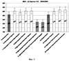 СПСЭ – суммарный показатель стойкости эритроцитов – площадь под кривой распределения. На фиг.1 видно, что препараты: бициллин, вибромицин, канамицин, линкомицин, левомицетин не переносимы, так как их белые столбики и доверительные интервалы ниже нижней доверительной границы столбиков – площадей с физраствором (косая штриховка). Остальные препараты – переносимы. Для данной больной был рекомендован и выбран гентамицин. Лечение этим антибиотиком прошло без осложнений.