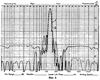 Экспериментальная отработка предлагаемой антенны была проведена на макете, выполненном в полном соответствии с вышеописанной конструкцией, представленной на фиг.1-4. Представленные на фиг, 5 и 6 характеристики направленности макета (кривая 1 – на частоте 75 кГц, кривая 2 – на частоте 100 кГц) при работе в режиме формирования однолучевой ХН (фиг.5) и двухлучевой ХН (фиг.6) подтверждают, что заявленный технический результат – создание унифицированной гидроакустической антенны накачки, обеспечивающей эффективное излучение волн накачки при работе навигационного комплекса судна как в режиме эхолота, так и в режиме гидроакустического доплеровского лага, достигнут.