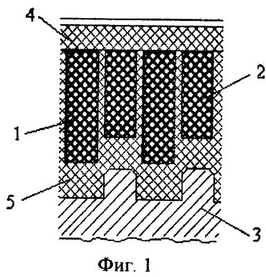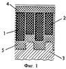 Схема конструкции антенны показана на фиг.1, где 1 – пьезоэлементы с резонансной частотой 100 кГц; 2 – пьезоэлементы с резонансной частотой 75 кГц; 3 – тыльный экран; 4 – герметизирующий слой; 5 – полиуретановый компаунд.
