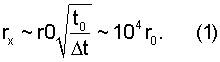 Оценим радиус пятна rх, нагретого на t° по отношению к начальной температуре t0 пересекаемой пластины, из соотношений (r0х):