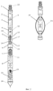 На фиг.2 представлен вариант конструкции предложенного технического решения скважинного прибора с двумя дополнительными модулями – дополнительный модуль расходомера 20, который оснащен центратором 21 и установлен сверху над основным модулем, к которому модуль расходомера 20 подсоединен вместо приборной головки 19 под кабельный наконечник, и акустический модуль 22, который установлен под основным модулем и оснащен акустическим изолятором 23, установленным в корпусе акустического модуля.