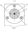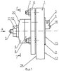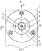 При повороте первого котировочного диска 8 (фиг.3, 4, 5, 6) относительно поводка 27, который поворачивается в отверстии 31 отжимного фланца 6, торцевая поверхность 17 перемещается по поверхности 37 отжимного фланца 6. При повороте первого юстировочного диска 8, например, влево или вправо, поверхность отверстий 22 взаимодействует со стержнем 5 и поворачивает его в том же направлении.