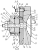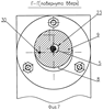 Первый 8 и второй 9 юстировочные диски и отжимной фланец 6 взаимосвязаны между собой посредством поводков 27. Одни концы поводков 27 жестко установлены в отверстиях 28 и 29 первого юстировочного диска 8. Отверстия 28 и 29 первого юстировочного диска 8 выполнены на одном радиусе центрального отверстия 22 первого юстировочного диска 8. Другие концы поводков 27 – один из них установлен в отверстии 30 выполненного на одном радиусе второго юстировочного диска 9, а второй в отверстии 31 отжимного фланца 6 с возможностью поворота в отверстии 31 отжимного фланца 6 и в отверстии 30 второго юстировочного диска 9. Жесткая фиксация одних концов поводков 27 в отверстиях 28 и 29 (фиг.3, 4) первого юстировочного диска 8 и установка других концов поводков 27 с возможностью поворота в отверстии 31 отжимного фланца 6 и в отверстии 30 второго юстировочного диска 9, позволяет обеспечивать автономное угловое перемещение дисков.