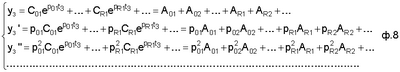 – по формулам 9 (аналогично нахождению показательного решения для заданных параметров yз, yз‘,…) определяются слагаемые А01,… АR1,… для текущей характеристики выходного параметра yт, yт‘,… ф.11