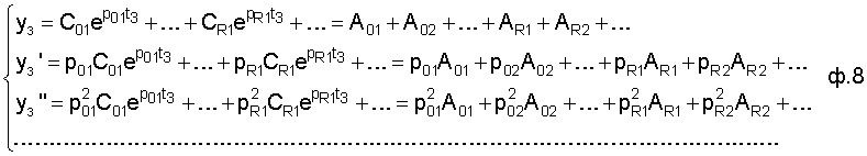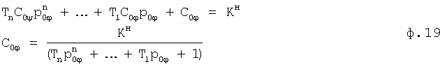 В дальнейших вычислениях для нахождения постоянных интегрирования слагаемых “относительного” свободного состояния используется ф.16, в которой постоянные COi вычисляются по известным Kн, Тn, и ф.19