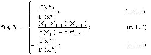 б) одному (например, первому) из используемых корней производной (от исследуемого равенства), между которыми ищется корень согласно п.1.2, т.е. X’i-1;