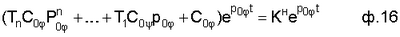 Для нахождения коэффициента усиления (т.е. коэффициента, стоящего в правой части) нового дифуравнения, т.е. “абсолютного” коэффициента Кн рассматриваемого слагаемого свободного состояния, подставляется частное решение в формулу “нового” дифуравнения ф.12 [3]. Получили ф.16
