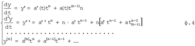 Новую переменную ф.1 подставляют в производные выходного параметра ф.4: