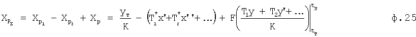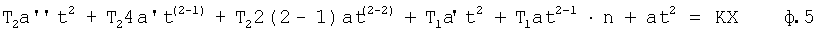– по известным (найденным ранее) значениям внутреннего запаздывания Т1…, коэффициента усиления К и величины входного сигнала (воздействия) Х из математических выражений в ф.6 и 7 определяют математические выражения для переменной а, а’,… приведенных в ф.33 и 34