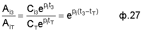 4) Если значение входного воздействия Х не известно (или по какой-либо причине установить структуру исследуемого объекта невозможно) и невозможно сформировать уравнение аналогичное математическому выражению ф.5, то поиск переменной времени производят используя ф.1 и ф.4. Для этого находят производную ф.1, получают выражение в ф.35в