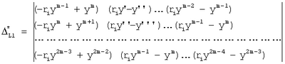 Определители неизвестных по производным (1), (2) и (4) формируют на своих выходах значения корней (соответствующих приближений для соответствующих систем равенств) по следующим формулам 42-45 [3 стр.390, 391].
