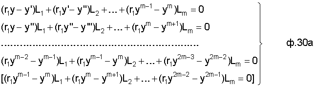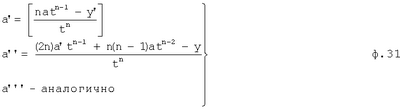 – по ф.1 и ф.4 вычисляются а, а’, а”,… (значение а из формулы 1 подставляется в ф.4 и выводятся математические выражения для а’, a”,… ф.31