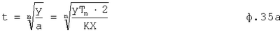 Полученное выражение 35б используется для нахождения текущей переменной tт в ф.36