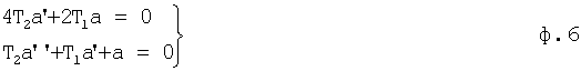– текущая характеристика а'(t), a”(t)… новой переменной a(t) определяется из системы уравнений ф.1 и 4 по известным y, y’,… или из ф.6 по известным Т1, Т2… при этом производные введенной величины а(t) зависят не только от постоянных внутреннего запаздывания, но и от значения самой величины а(t):