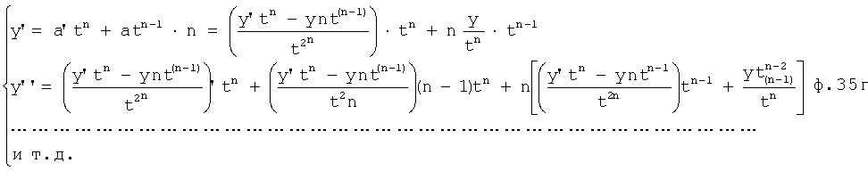 2) если Х=fx(t), то после подстановки этой зависимости в ф.5 и последующего составления системы уравнений из коэффициентов (аналогично ф.6 и 7), определяющих значения математических зависимостей для а, а’,… аналогично ф.33, 34 и получается математическое выражение аналогичное ф.35