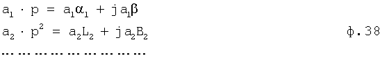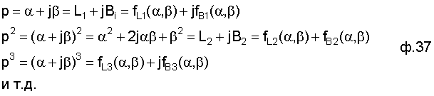 Таким образом, преобразователь позволяет определить зависимости действительной части L степенного многочлена М от действительной мнимой частей переменной Р, аналогично определяется зависимость мнимой части В степенного многочлена М от действительной мнимой частей переменной р. Полученные выражения приведены в ф.39.