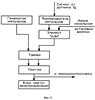 11. Устройство для интеллектуальной диагностики сбоев автомобильных датчиков микропроцессорной системы управления двигателем, содержащее последовательно соединенные микроконтроллер, исполнительные механизмы и двигатель, а также датчики, подключенные к микроконтроллеру, причем входы датчиков, включая бесконтактный датчик сбоев, соединены с выходами исполнительных механизмов и двигателя, отличающееся тем, что в него дополнительно введены параметрический датчик, установленный на двигателе, блок совпадений, многоуровневый компаратор, блок определения задержки сигналов и блок светозвукоиндикации, причем бесконтактный датчик сбоев соединен с блоком светозвукоиндикации непосредственно, параметрический датчик совместно с выходом датчика температуры охлаждающей жидкости – через блок совпадений (элемент “И”), а датчик кислорода ( -зонд) – через многоуровневый компаратор и блок определения задержки сигналов.