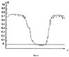 На фиг.6 показан выходной сигнал еще работающего, но близкого к отказу, и отказавшему датчика О2. Данная осциллограмма зафиксировала падение амплитуды выходного сигнала ниже 0 V, что говорит о неисправности датчика О2. Данная неисправность датчика обычно фиксируется системой самодиагностики контроллера.