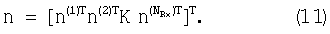 Вектор, описывающий каждый дискретный во времени сигнал возмущений в антенне n, задается уравнением