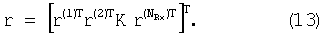 где означает произведение кронекеровых тензоров, I(NRx) есть матрица идентичности размером (Nrx×Nrx), а вектор h получается из матрицы H(t) так, что поддерживается