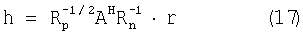 Отметим, что Rn может быть известно заранее или может оцениваться из принятых сигналов. Канальная оценка уравнения (16) содержит вектор AHRn -1h с ковариационной матрицей Rp=AHRn -1A. Эта ковариационная матрица в общем случае не является диагональной, т.е. компоненты вектора возмущения, содержащиеся в h, в общем случае коррелированы. Если Rp известно или может быть оценено, компоненты вектора возмущения, содержащегося в h, могут быть декоррелированы посредством преобразования h с помощью Rp -1/2. Это предполагается в нижеследующем, причем поддерживается