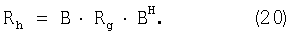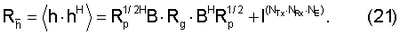 и при этом В есть матрица размером ((NTx·NRx·NE)×NCh), описывающая это линейное преобразование. Как задано выше, вектор g есть вектор размером (NCh×1) с некоррелированными компонентами, т.е. Rg= g·gH является диагональной матрицей размера (NCh×NCh). В этом случае канальная ковариационная матрица задается уравнением