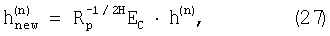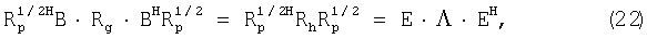 дает только NCh ненулевых собственных значений, причем есть диагональная матрица, содержащая собственные значения, а Е есть квадратная матрица, содержащая собственные значения Rp 1/2H B·Rg·BH Rp 1/2. При (21) и (22) оценка Rh ковариационной матрицы может быть выражена так