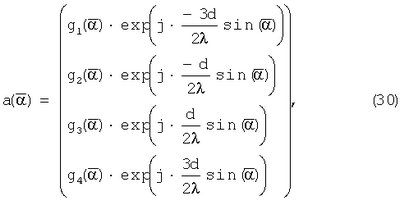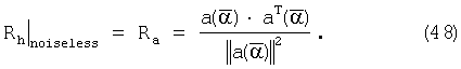Для случая без шума и при равной нулю угловой расходимости Rh есть ранг один (1), а вектор охватывает Rh. Таким образом, уравнение (47) понижается до