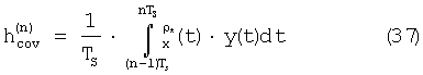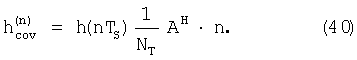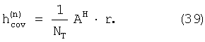 причем hconv (n) есть вектор, составленный из обычных, т.е. интегрированных и сброшенных канальных оценок, выведенных из n-го пилот-сигнала. Если уравнение (34) преобразуется в дискретное временное представление путем помещения NT=TS/T отсчетов пилот-сигналов xn(t) в столбцы матрицы А, NT отсчетов шумового сигнала z(t) – в вектор h, и NT отсчетов принятого сигнала y(t) – в вектор r, уравнение (34) даст