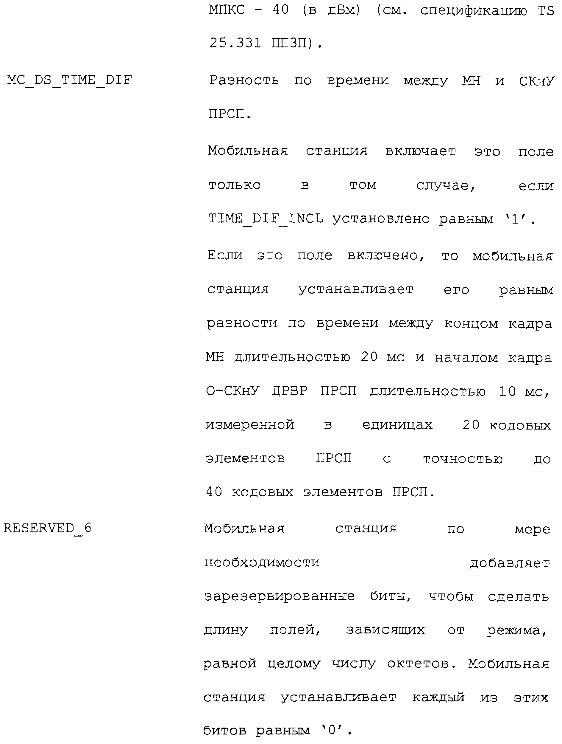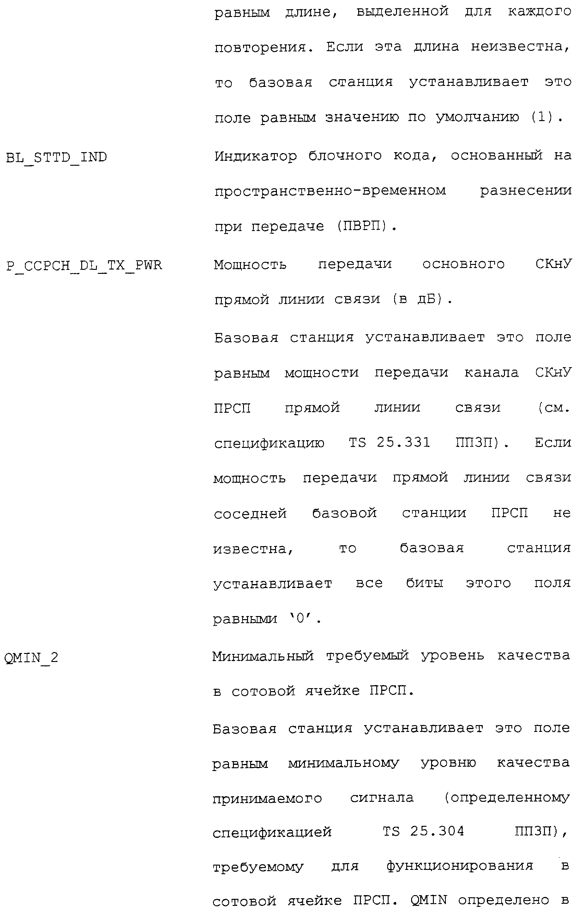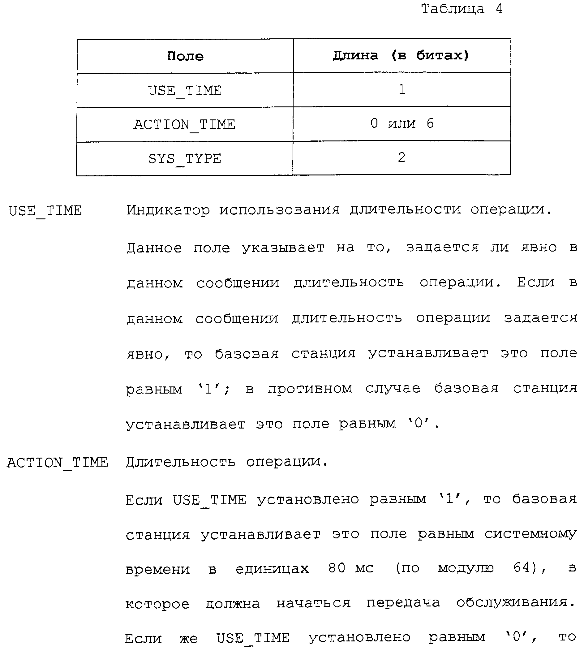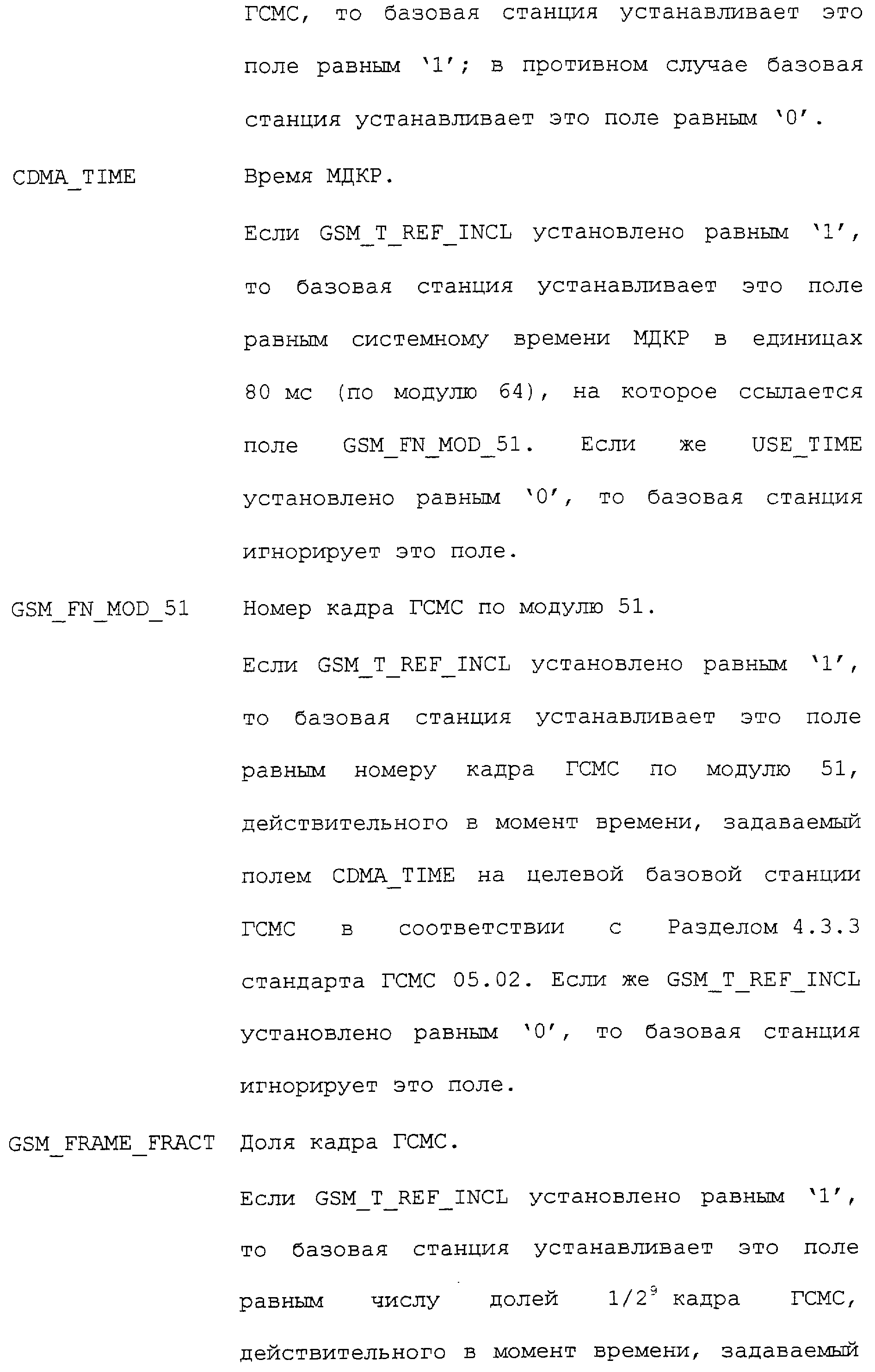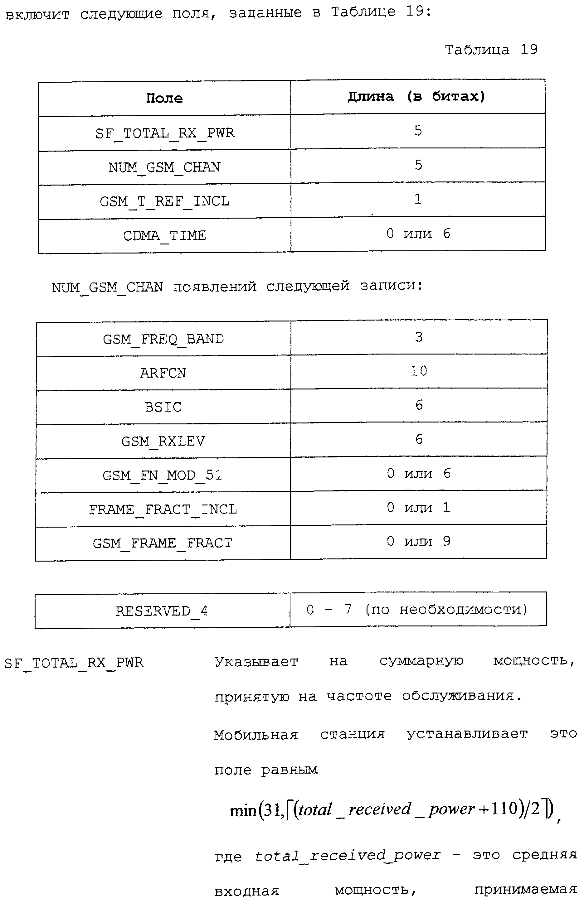 Нижеследующие таблицы и определения полей определяют соответствующие конкретным вариантам осуществления операции, выполняемые при межсистемной передаче обслуживания. Следует отметить, что в таблицах название поля приводится в левом столбце, а связанная с этим полем длина (в битах) – в правом столбце, если не оговорено обратное.