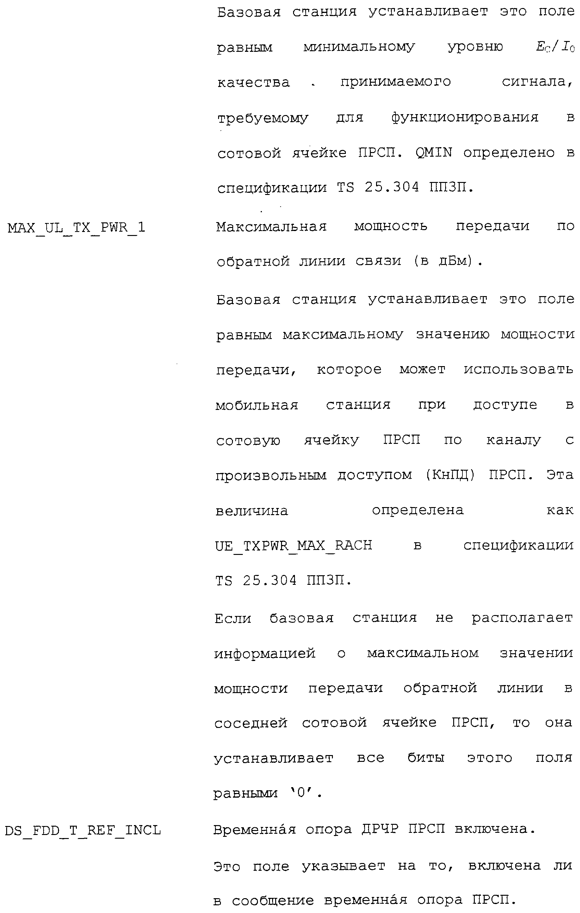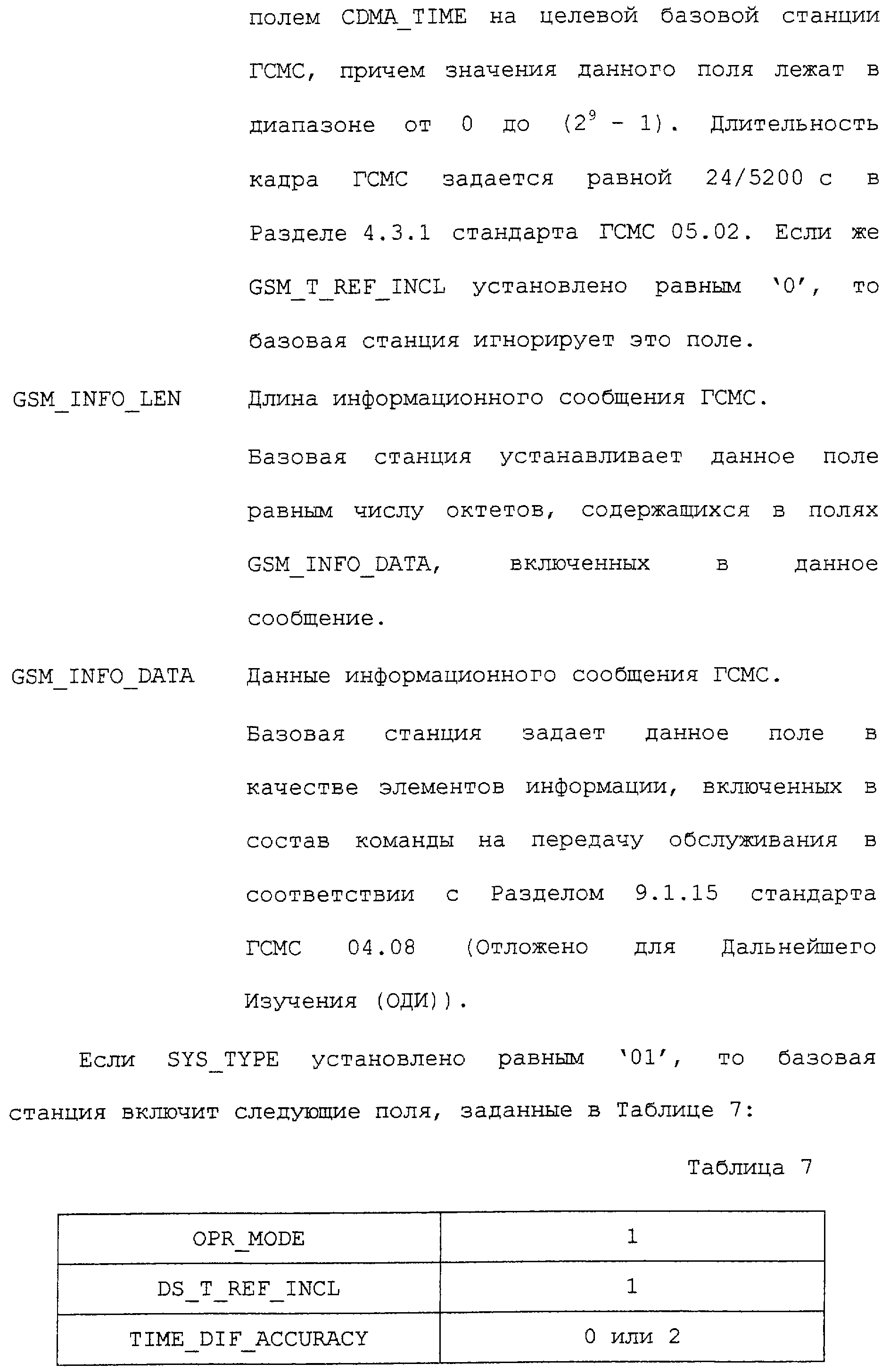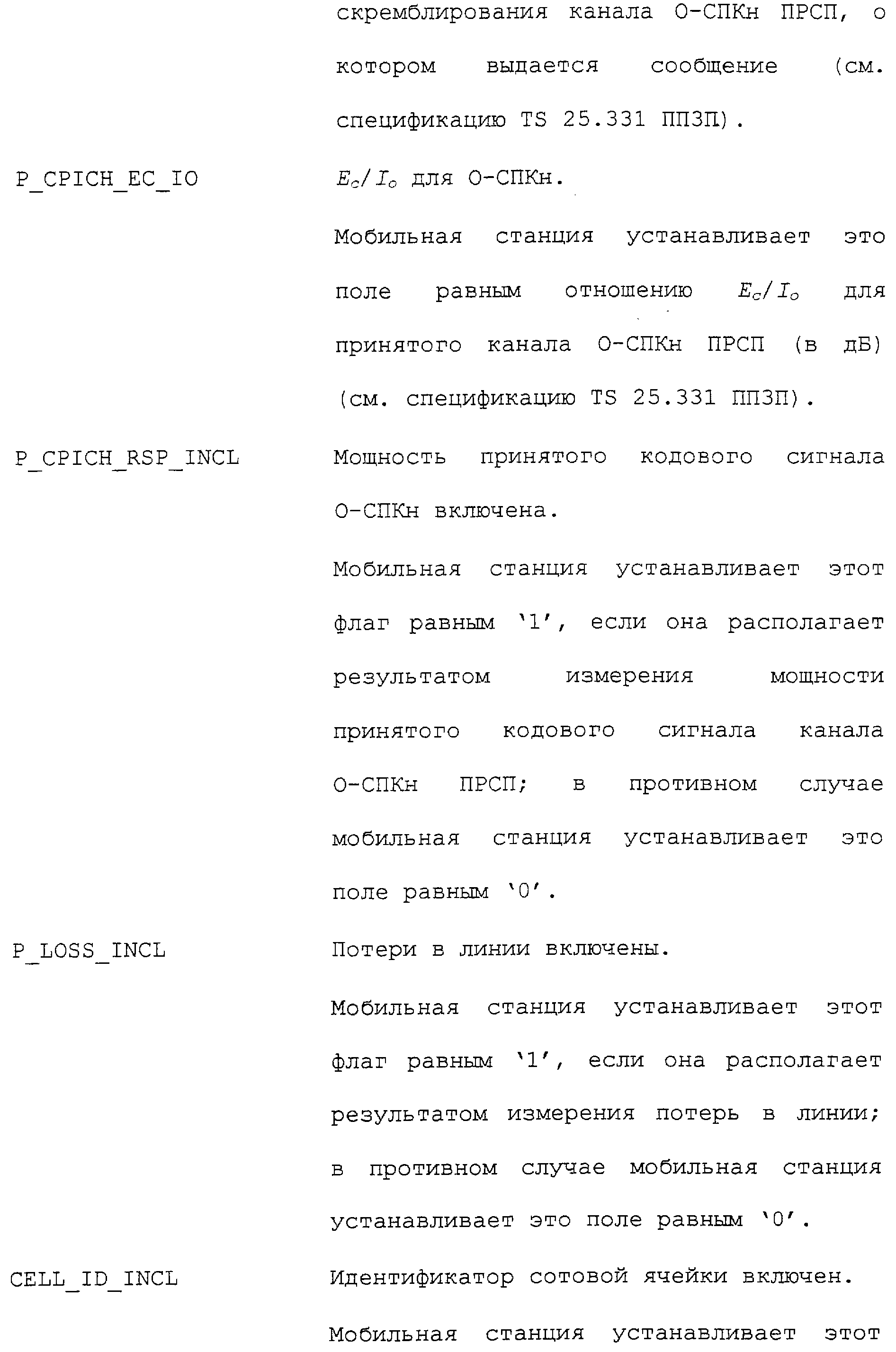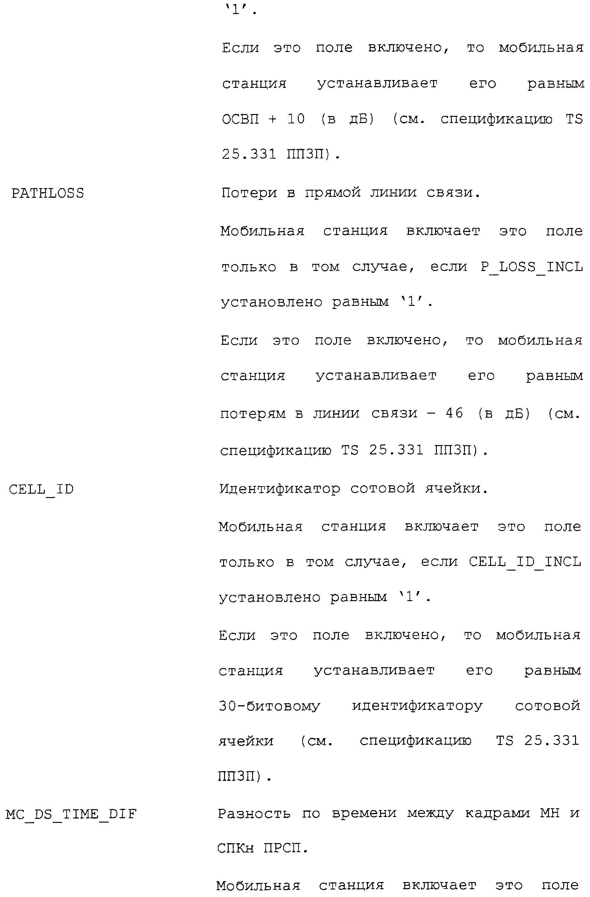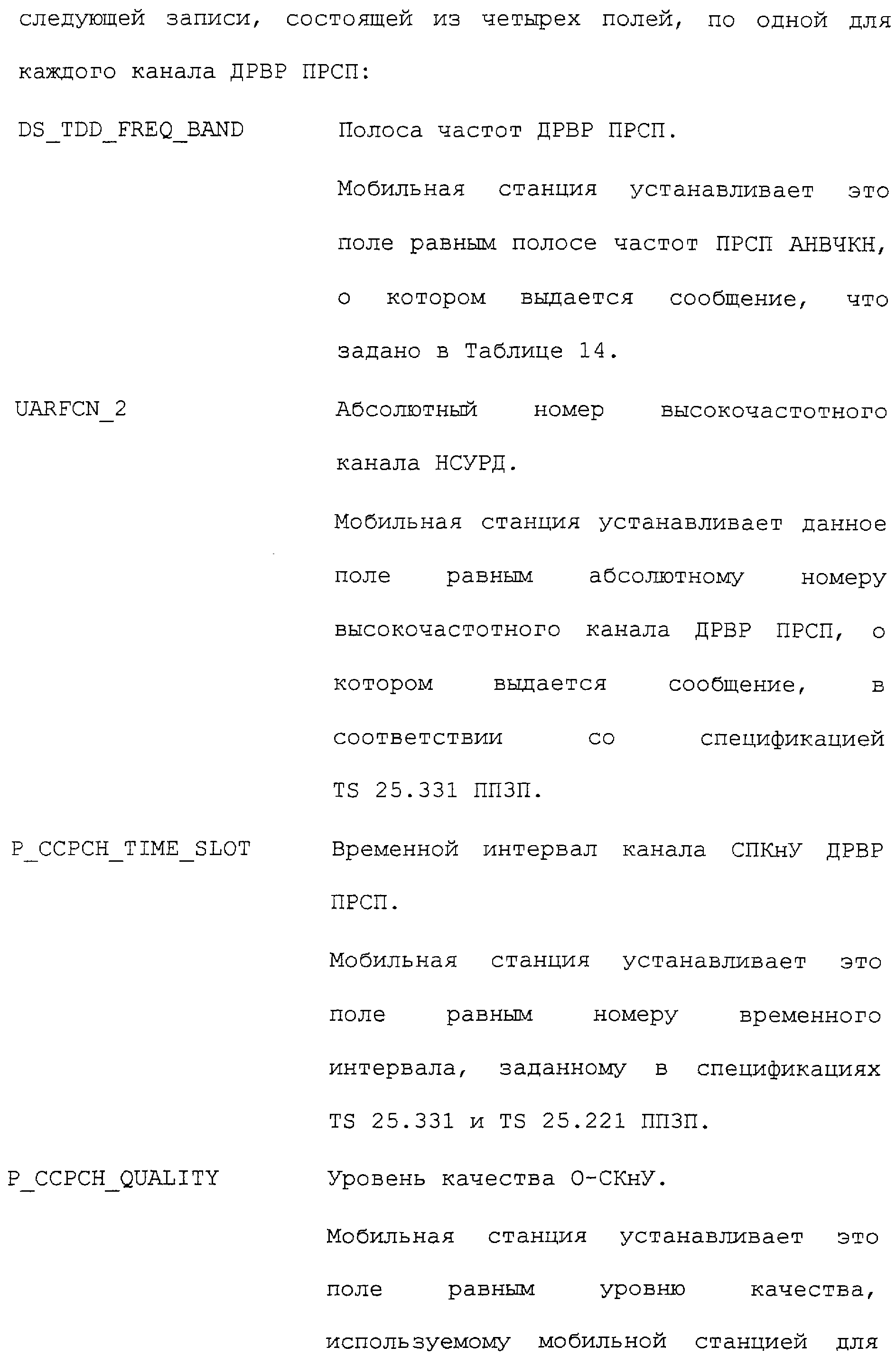 Нижеследующие таблицы и определения полей определяют соответствующие конкретным вариантам осуществления операции, выполняемые при межсистемной передаче обслуживания. Следует отметить, что в таблицах название поля приводится в левом столбце, а связанная с этим полем длина (в битах) – в правом столбце, если не оговорено обратное.