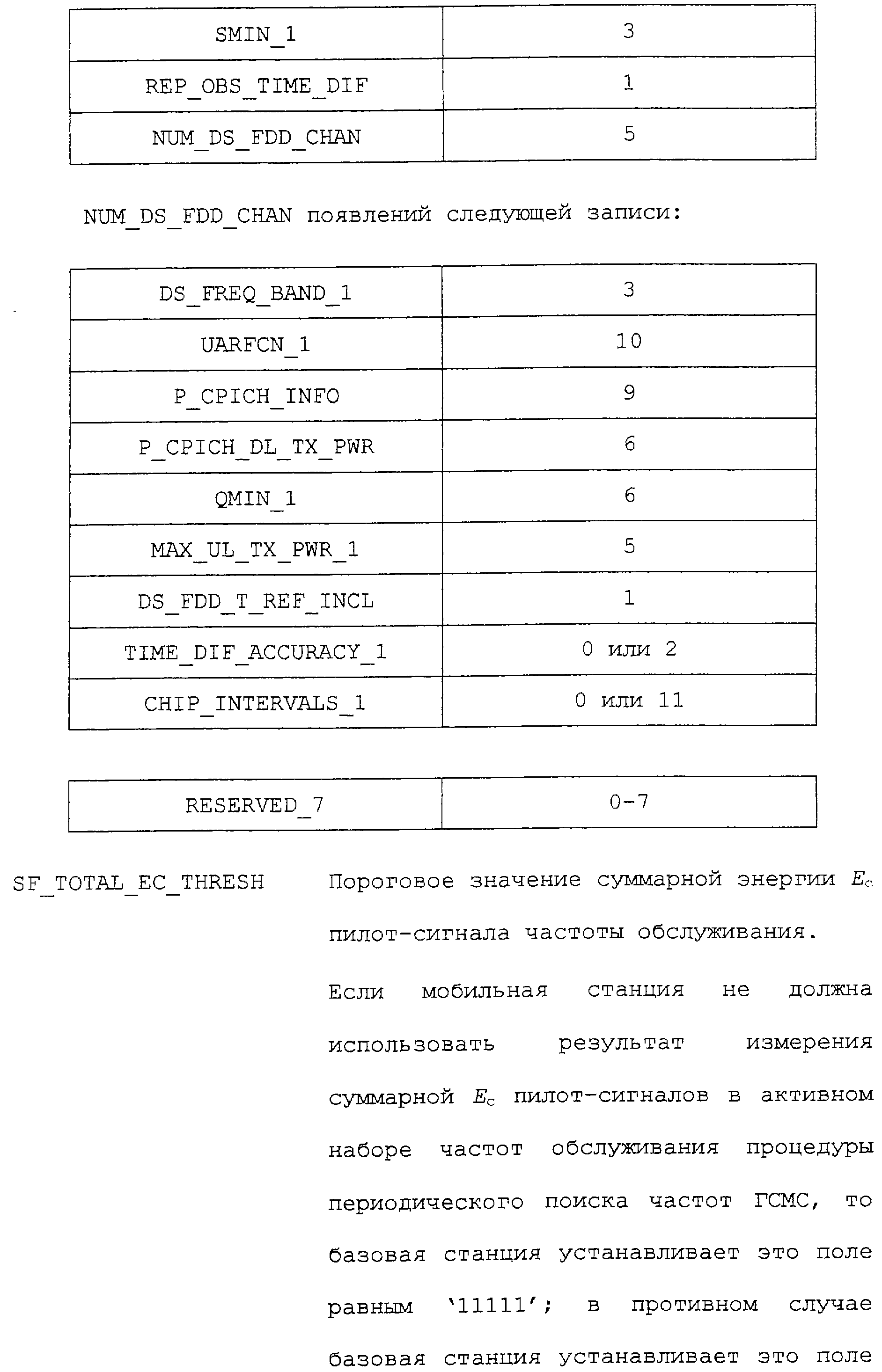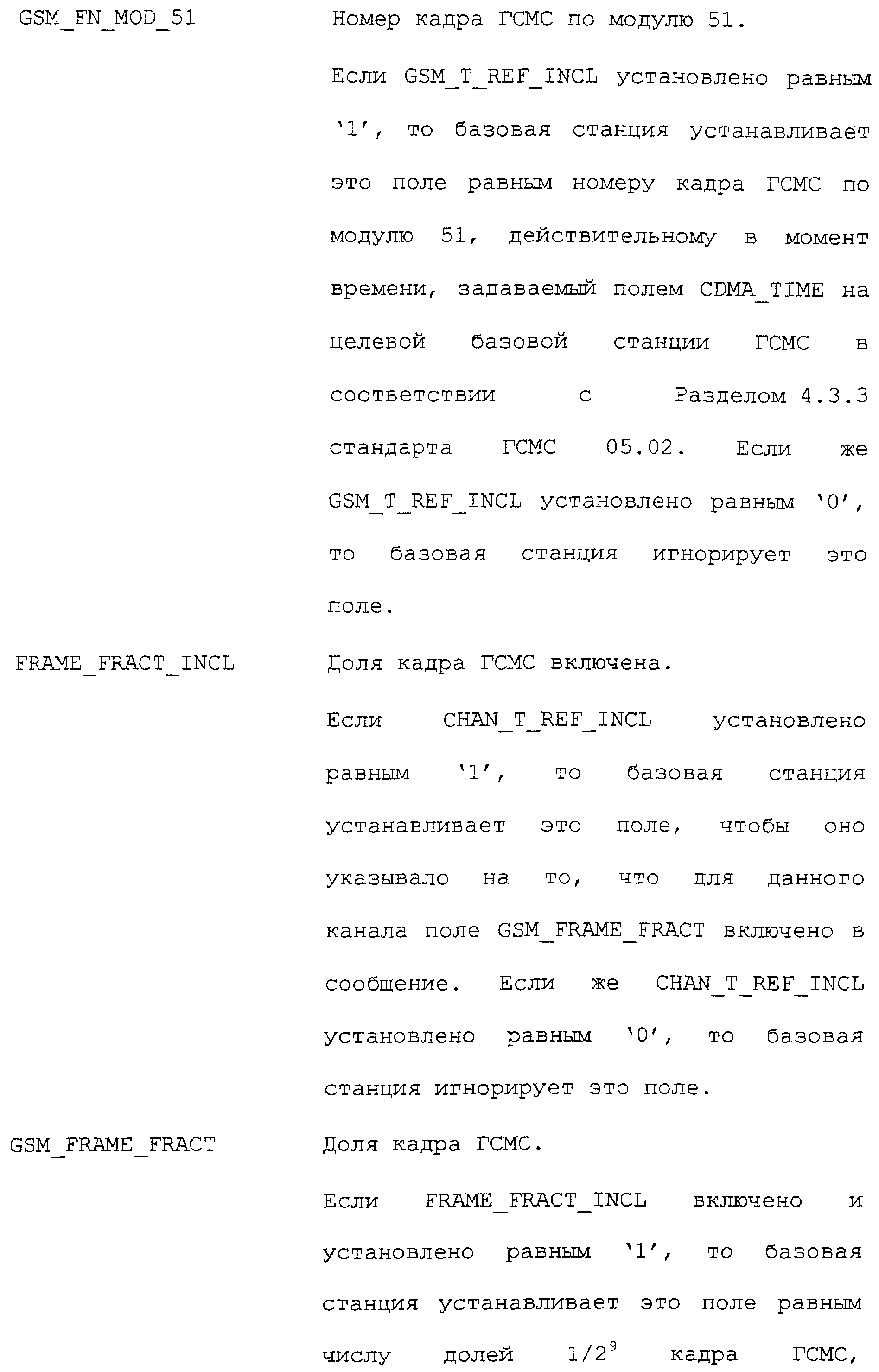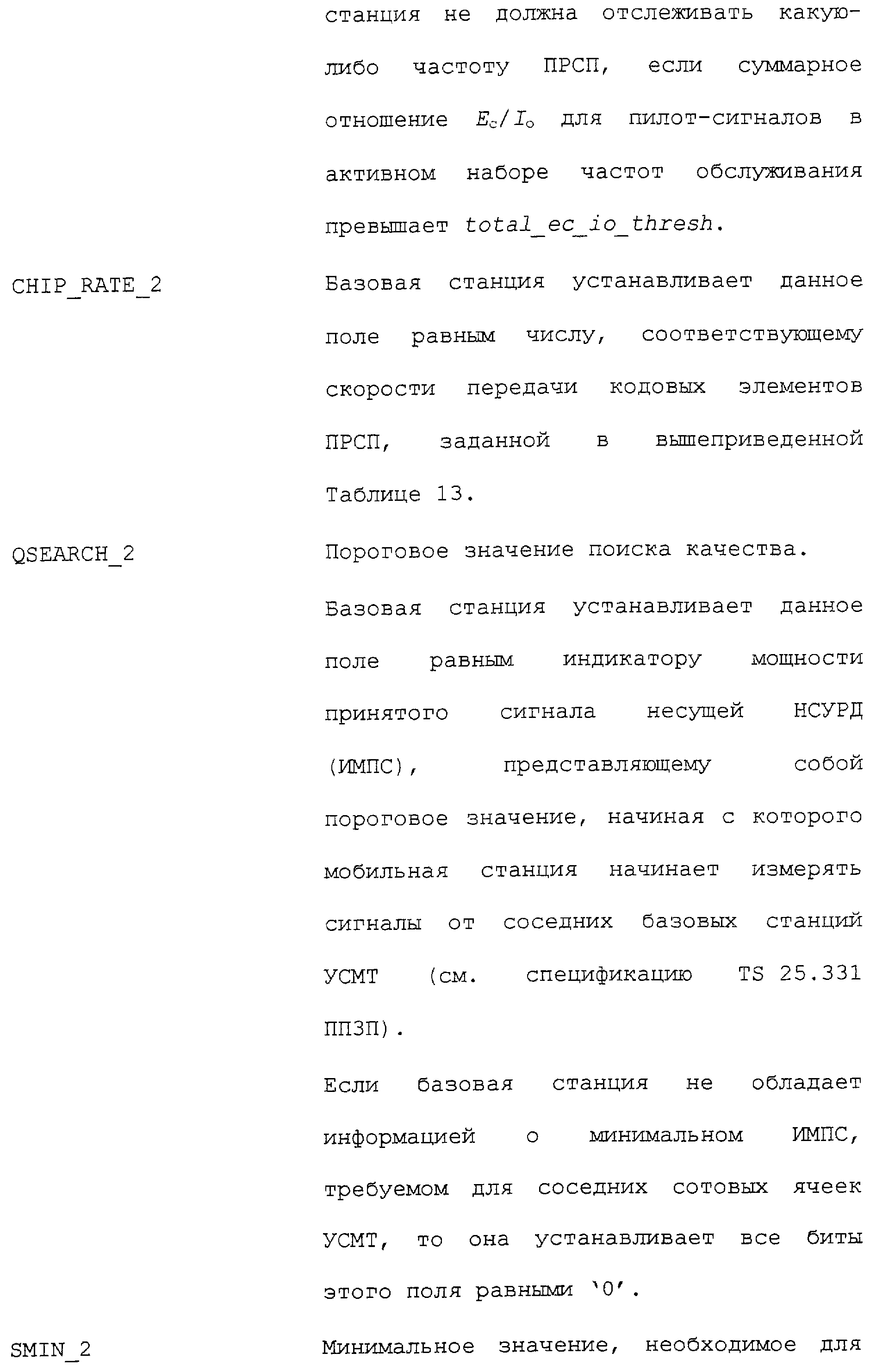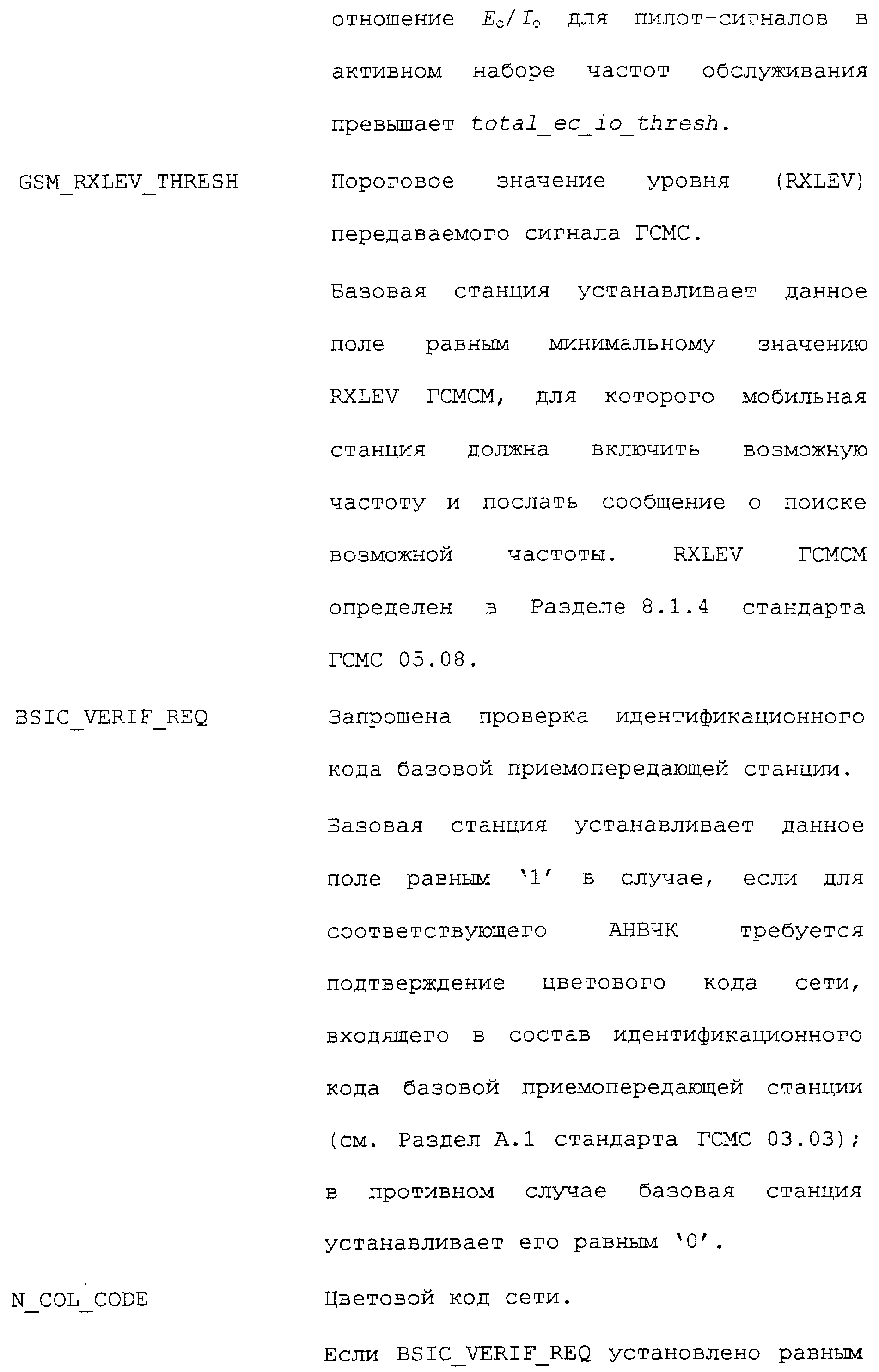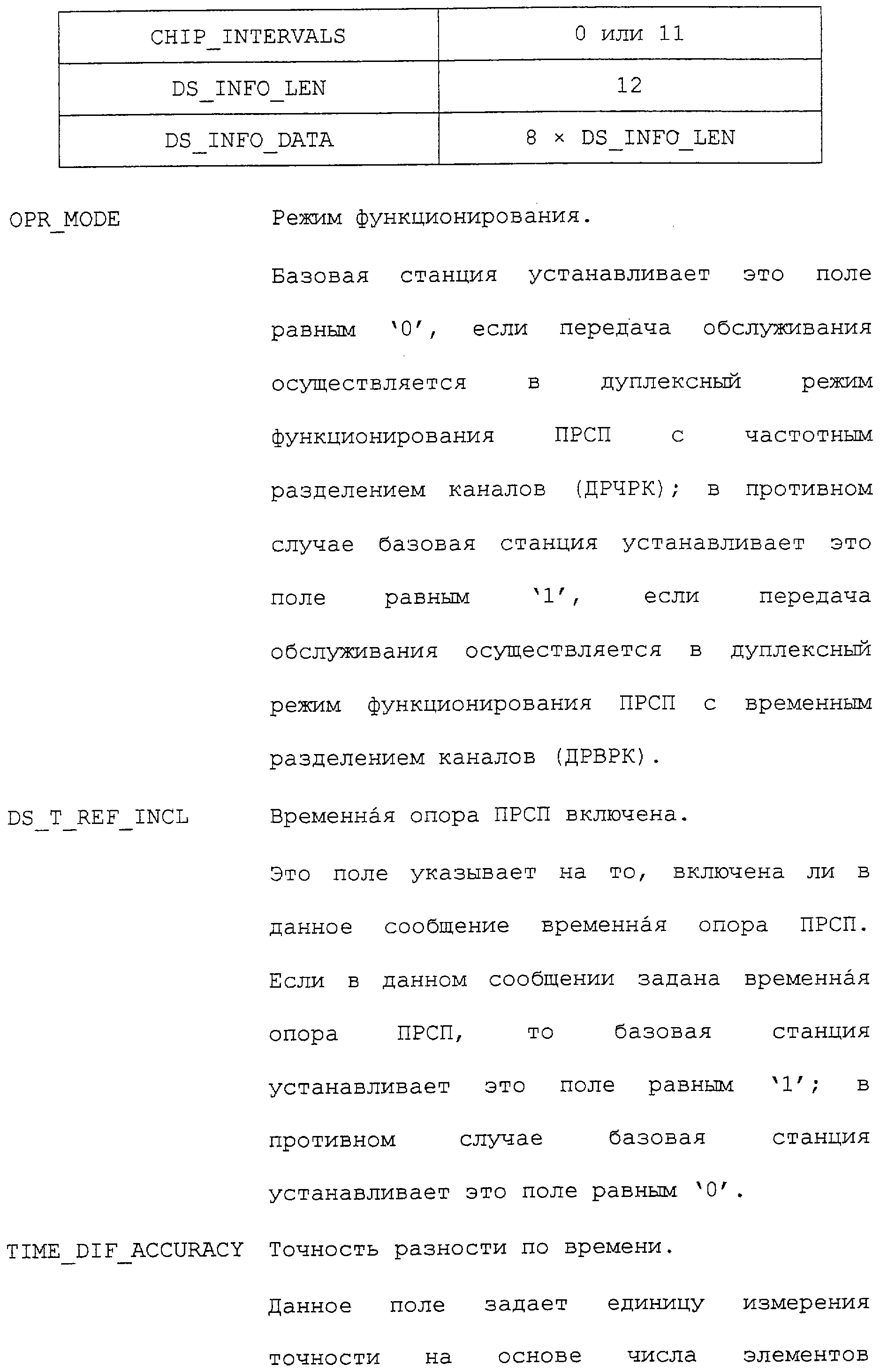 Нижеследующие таблицы и определения полей определяют соответствующие конкретным вариантам осуществления операции, выполняемые при межсистемной передаче обслуживания. Следует отметить, что в таблицах название поля приводится в левом столбце, а связанная с этим полем длина (в битах) – в правом столбце, если не оговорено обратное.
