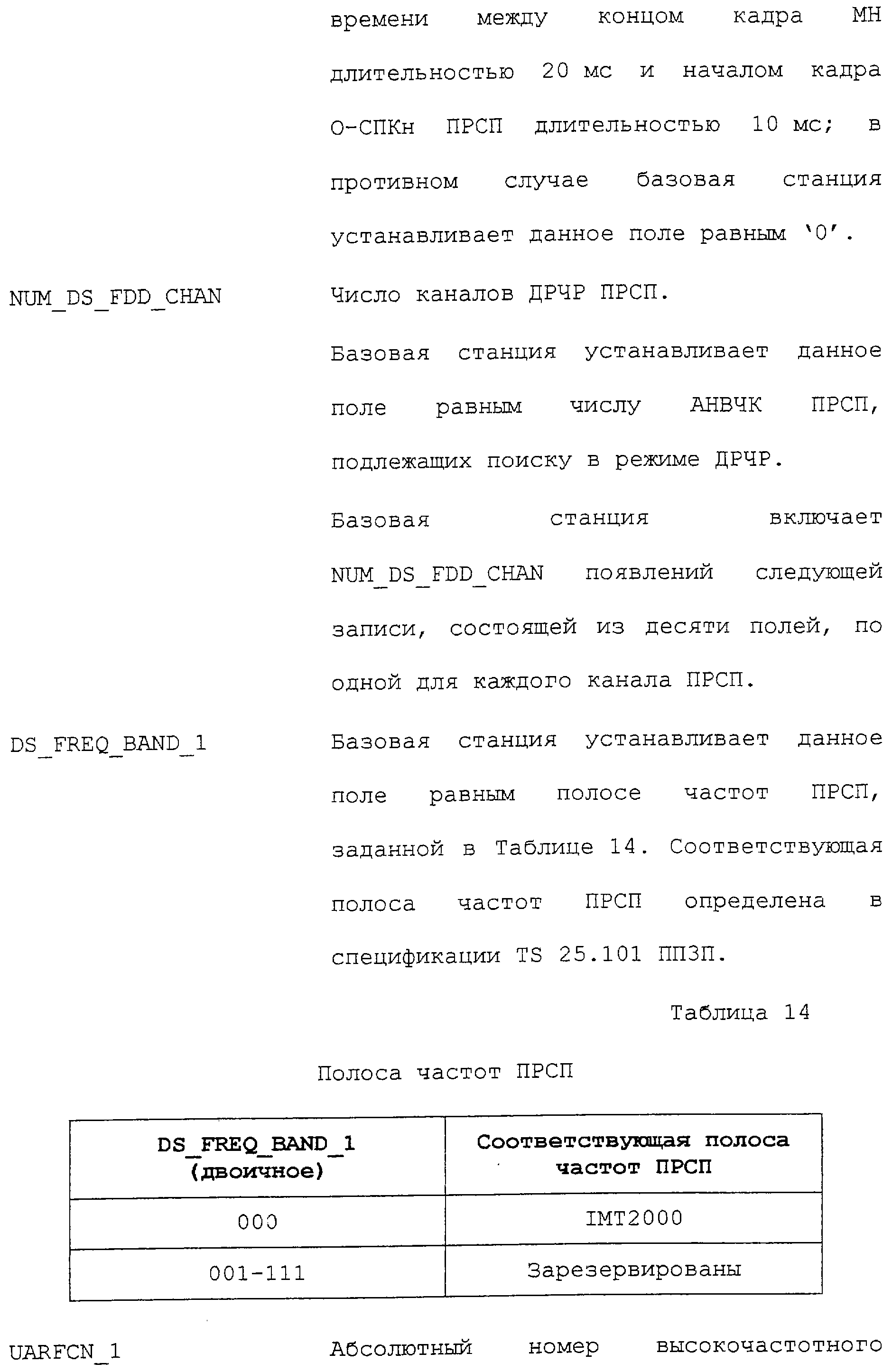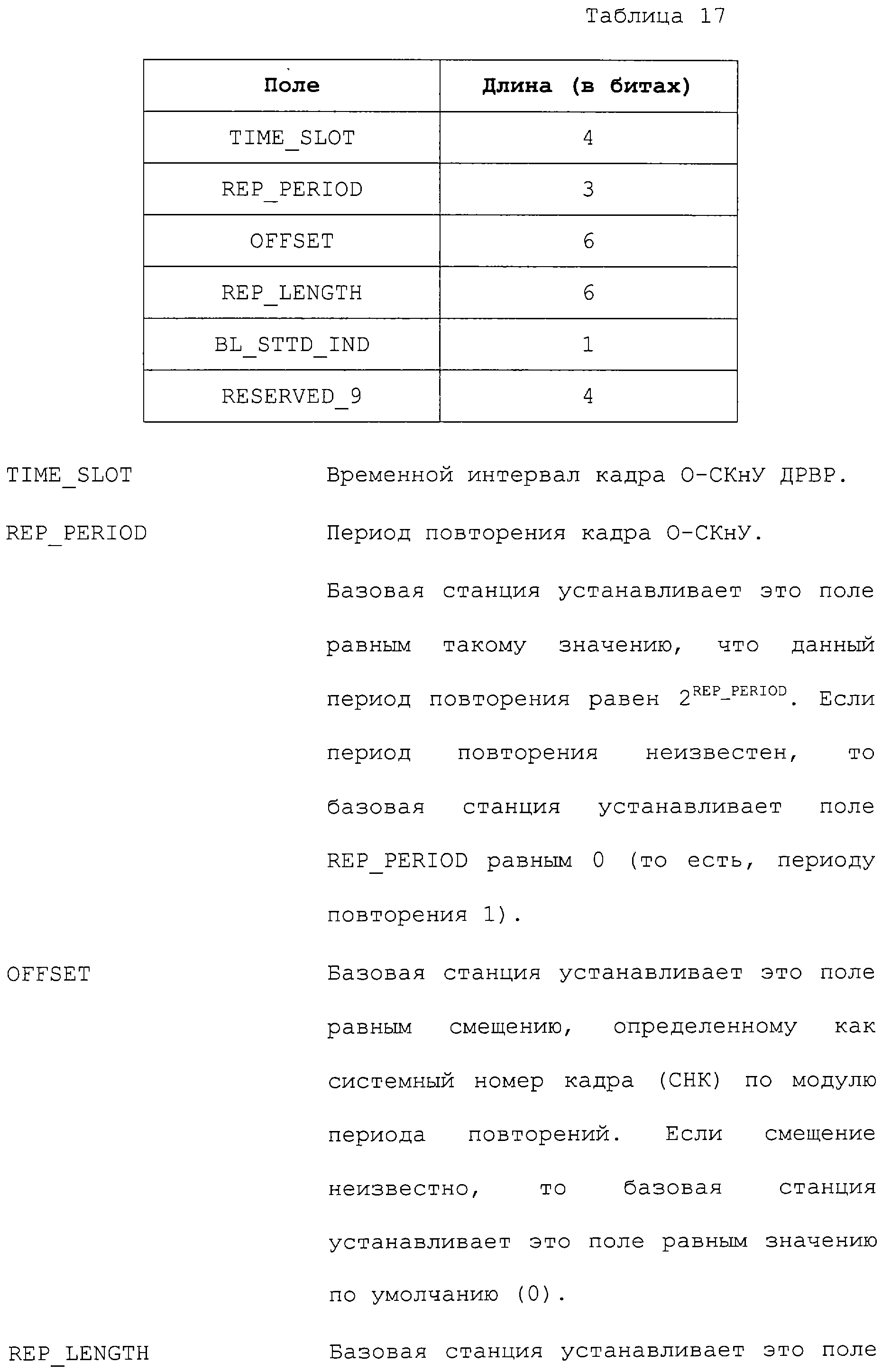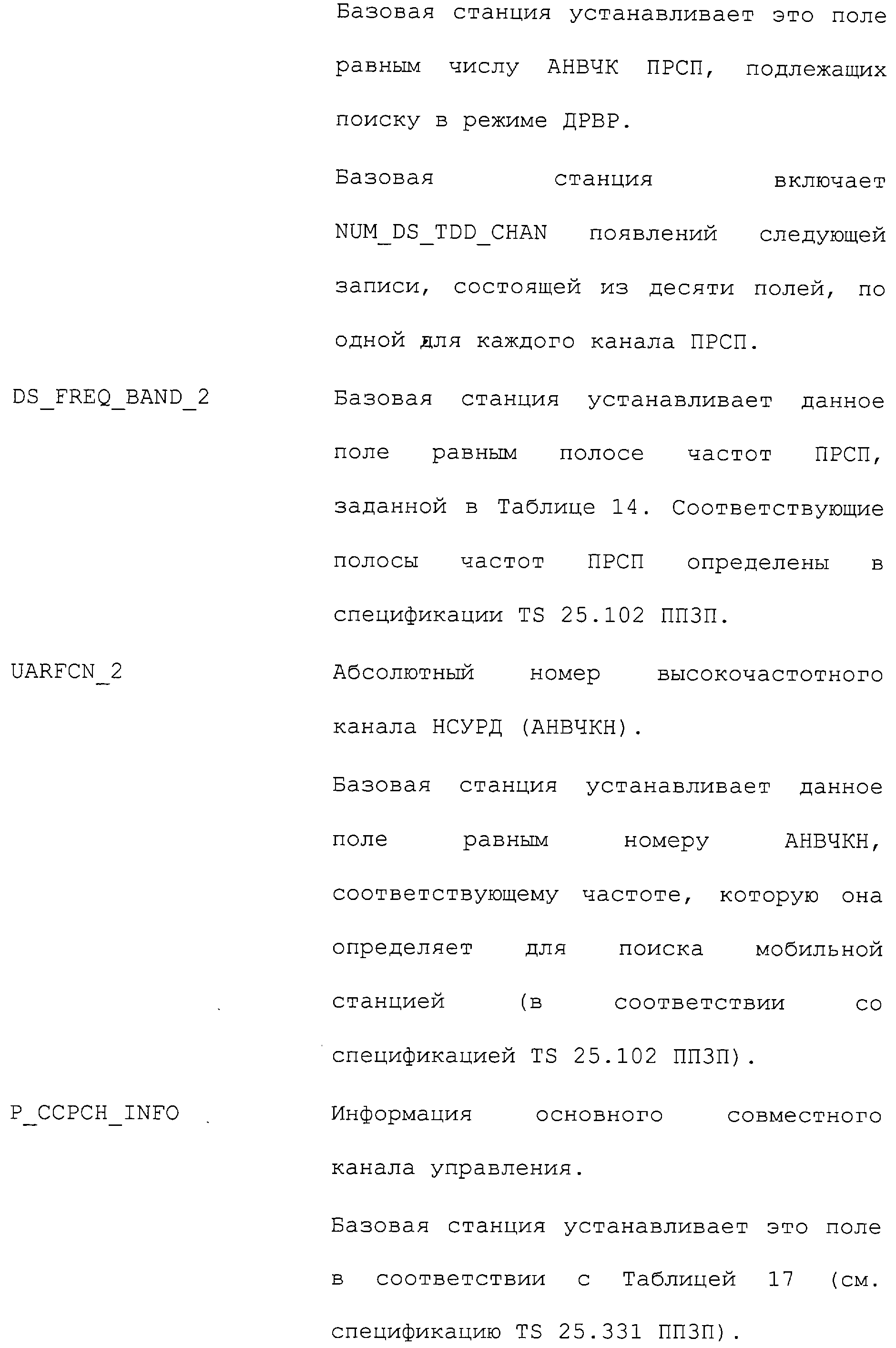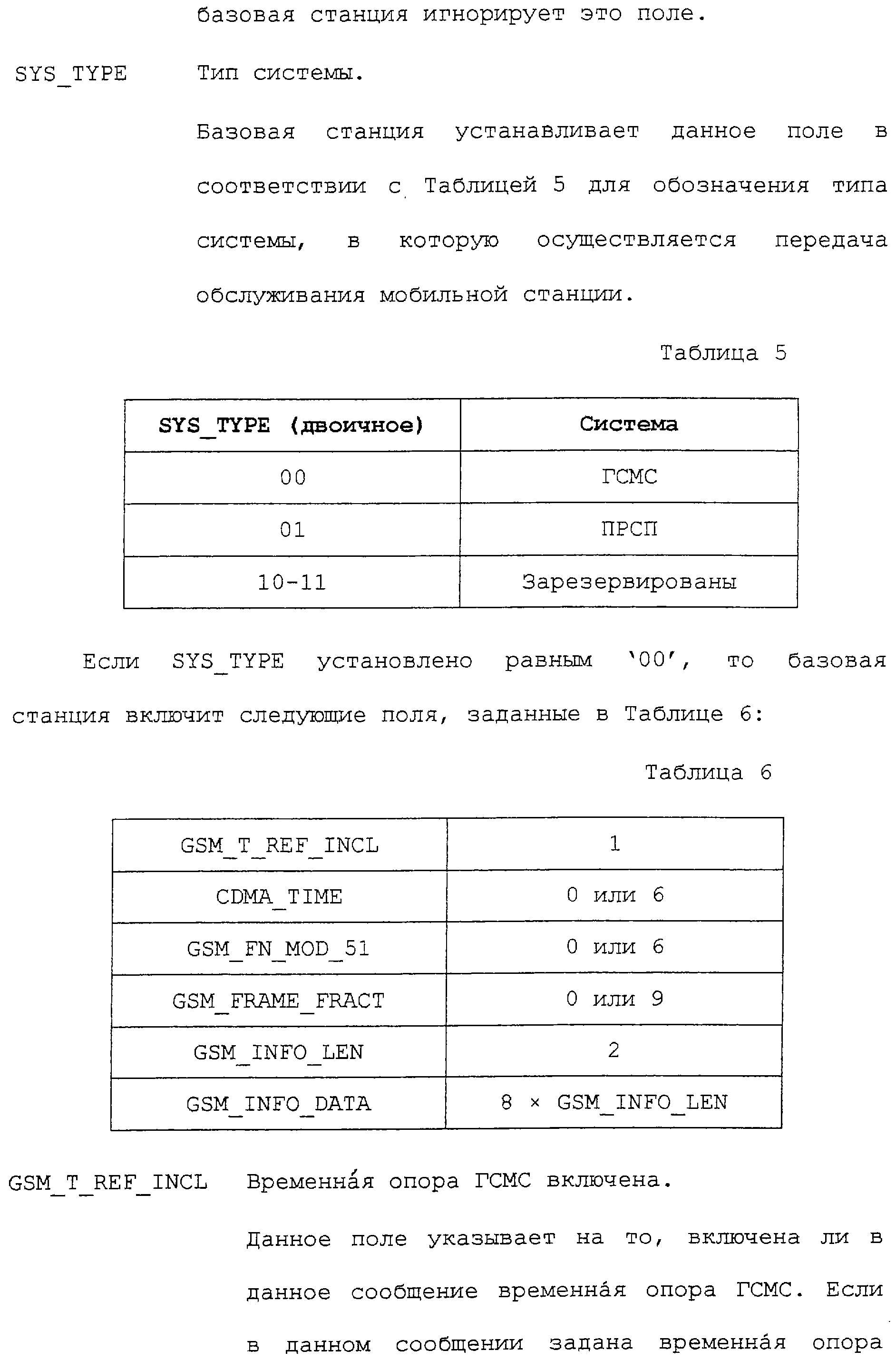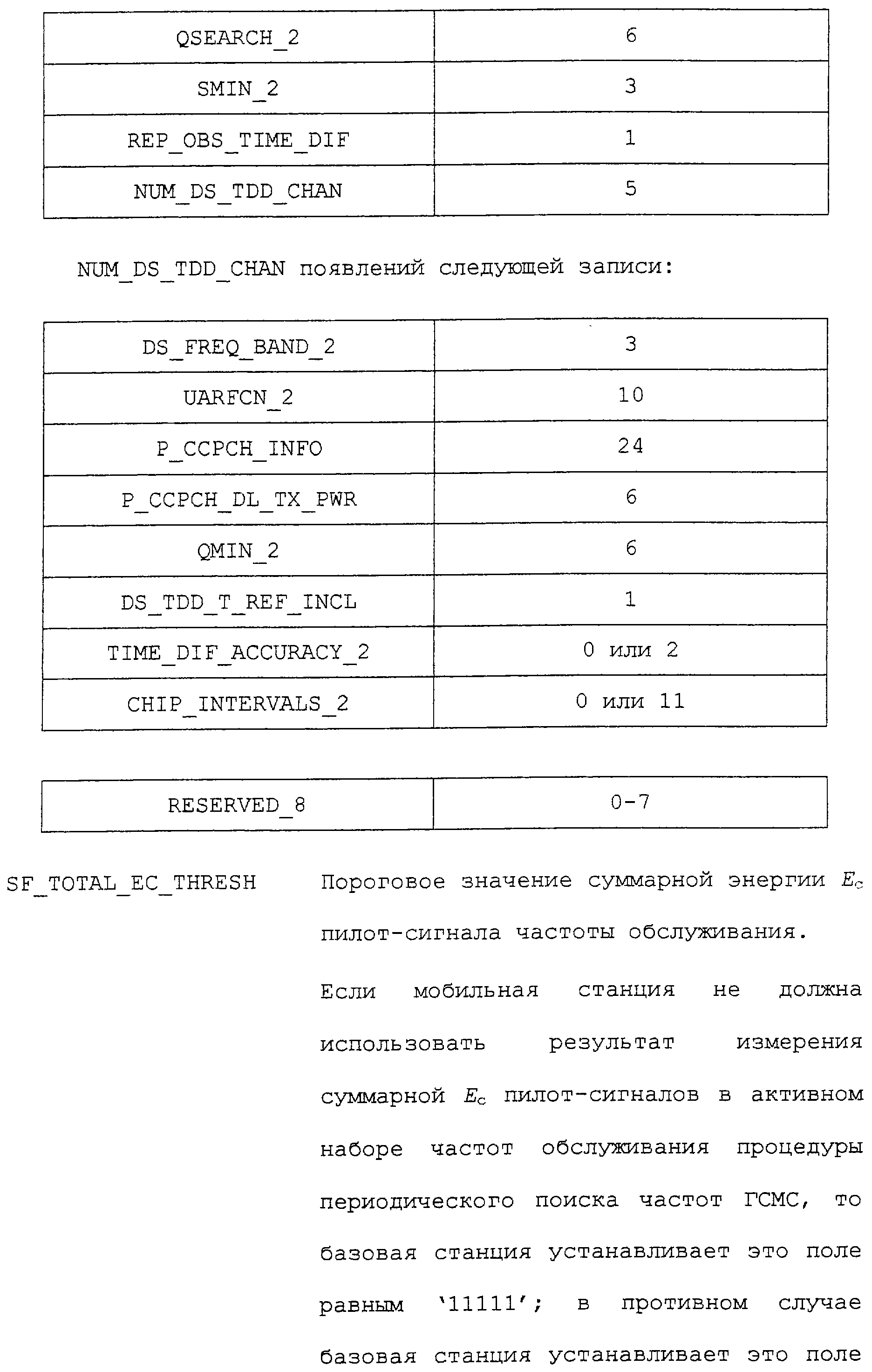 Нижеследующие таблицы и определения полей определяют соответствующие конкретным вариантам осуществления операции, выполняемые при межсистемной передаче обслуживания. Следует отметить, что в таблицах название поля приводится в левом столбце, а связанная с этим полем длина (в битах) – в правом столбце, если не оговорено обратное.