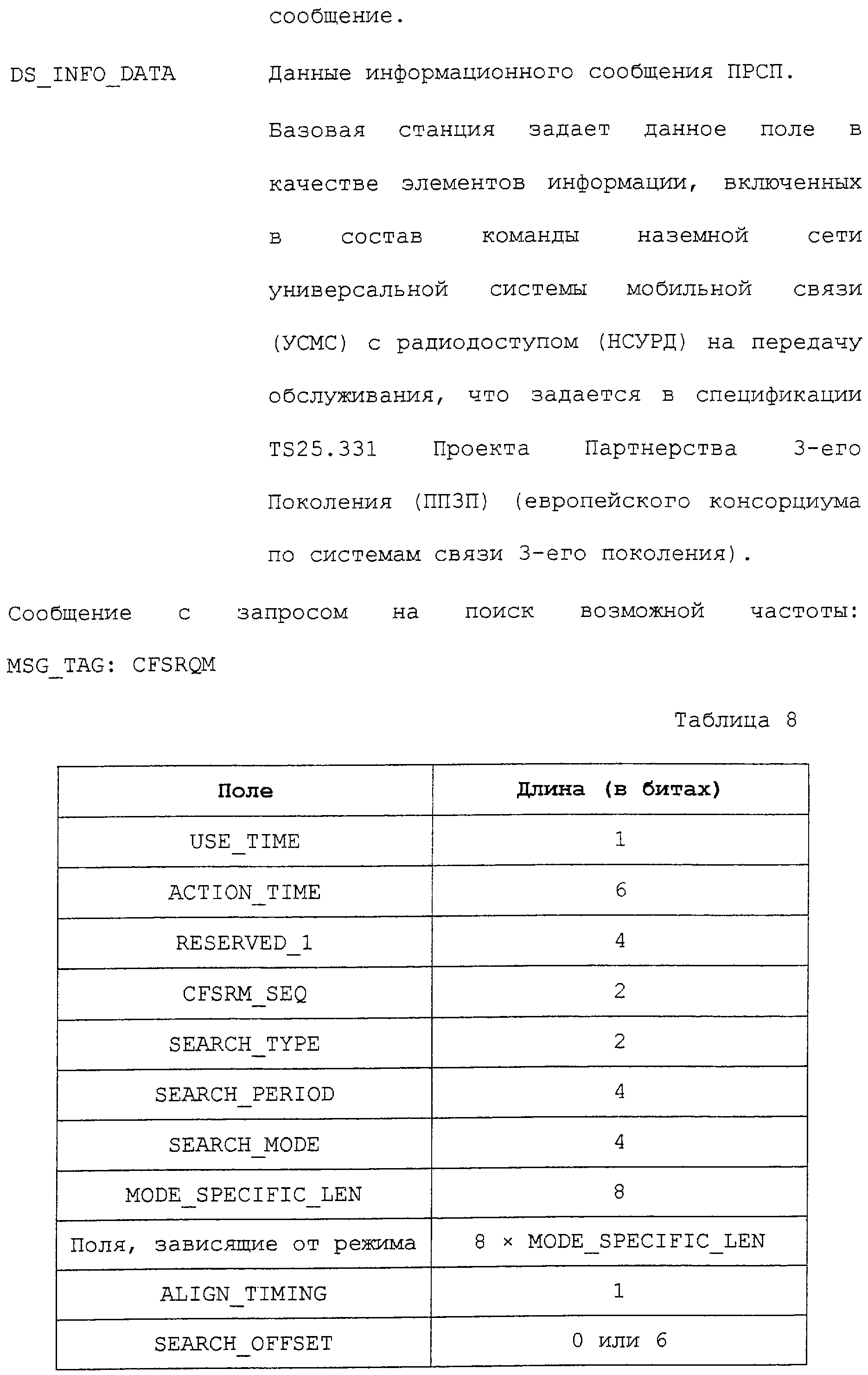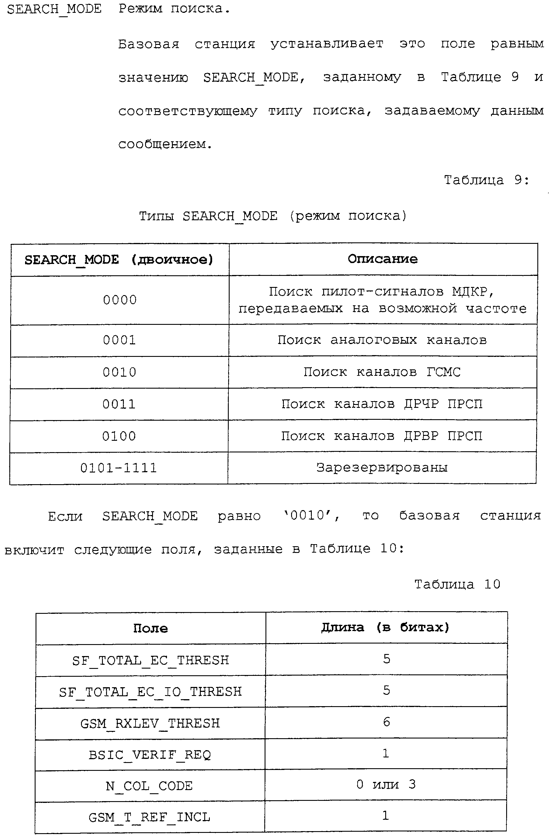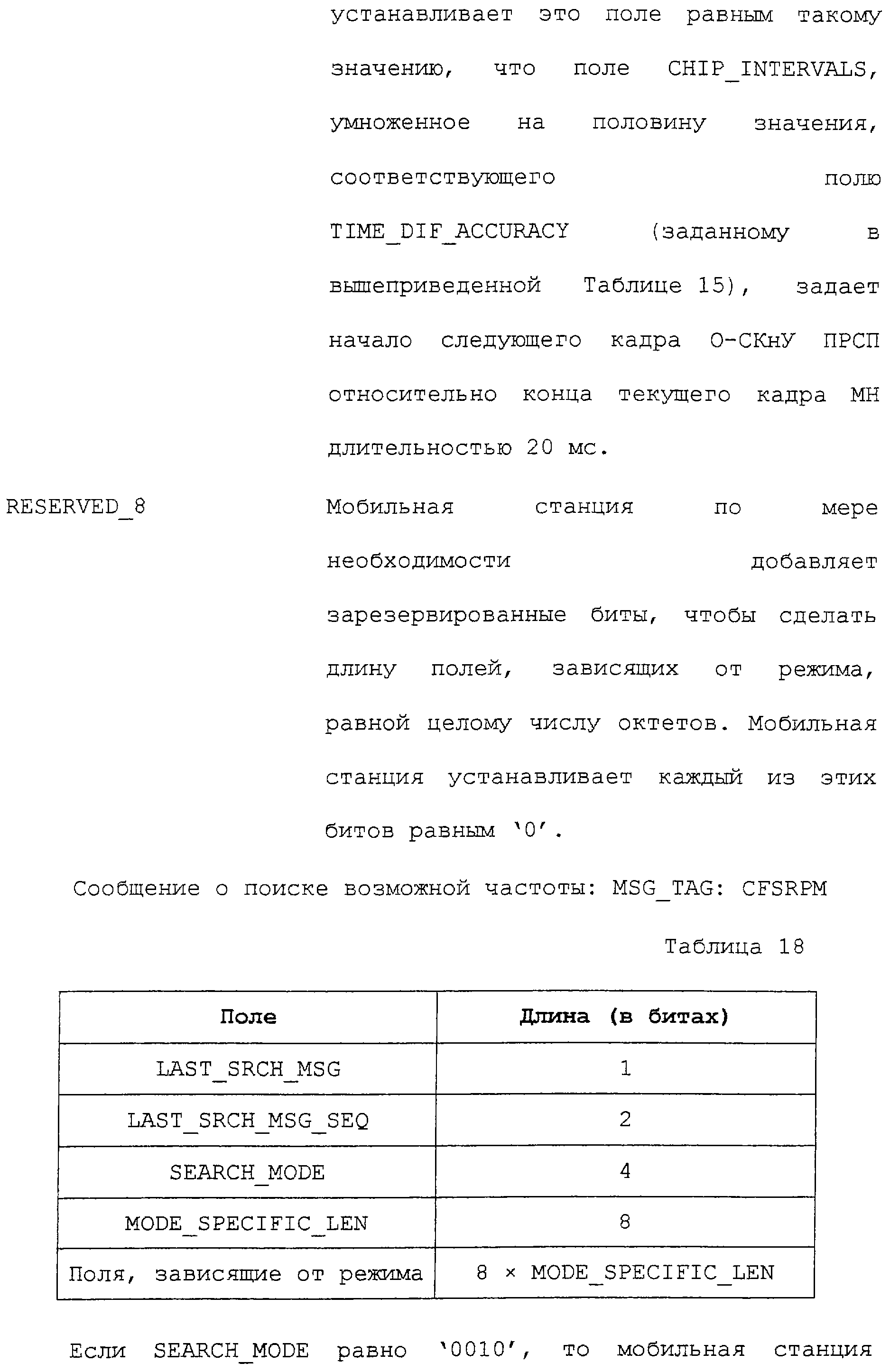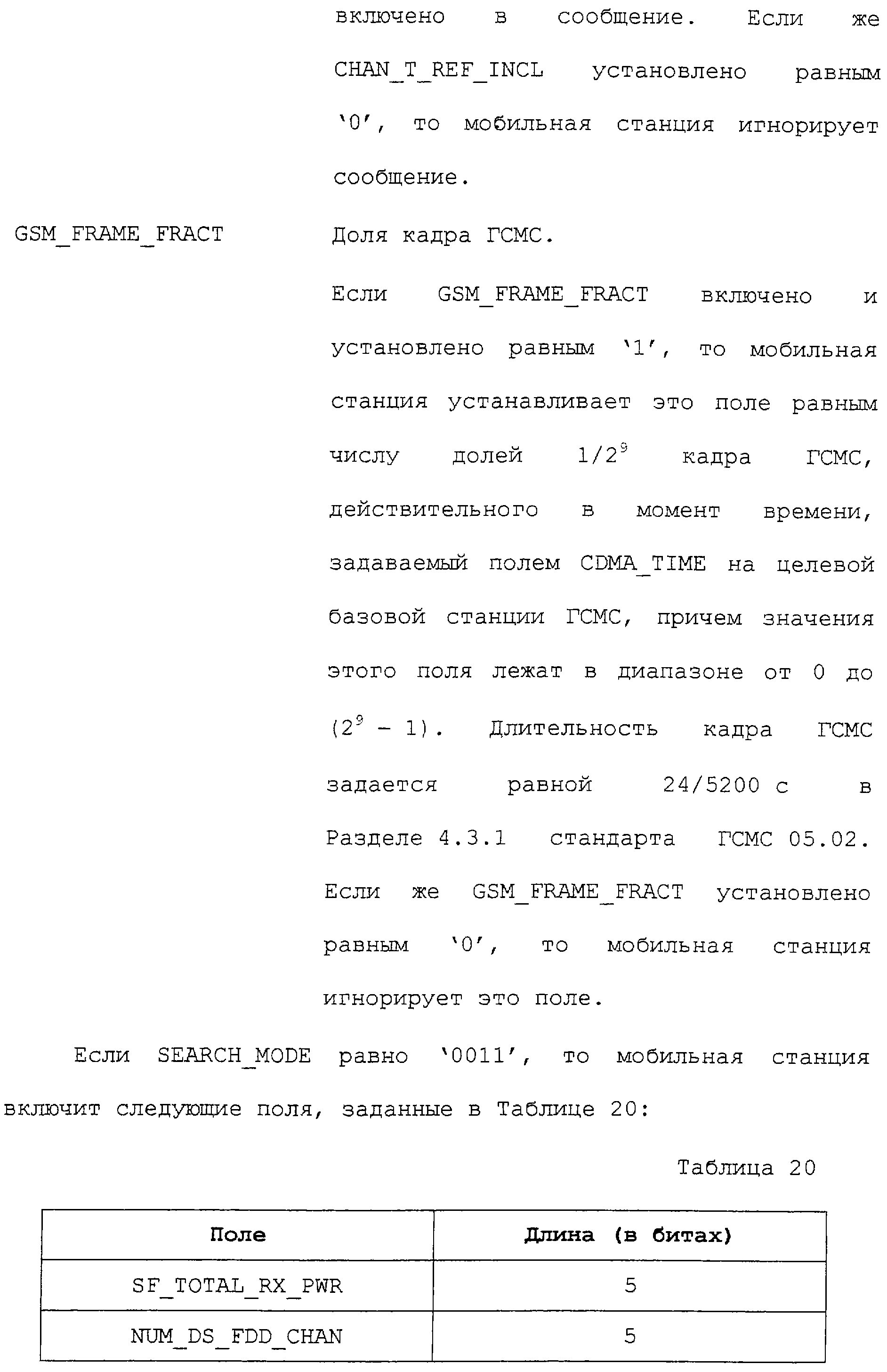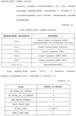 В соответствии с данным вариантом осуществления каждое из приведенных полей определено промышленным стандартом на системы связи ГСМС. Однако в первом варианте осуществления описываемых способа и устройства определен дополнительный режим поиска. В этом дополнительном режиме поиска запрашивается поиск каналов ГСМС.