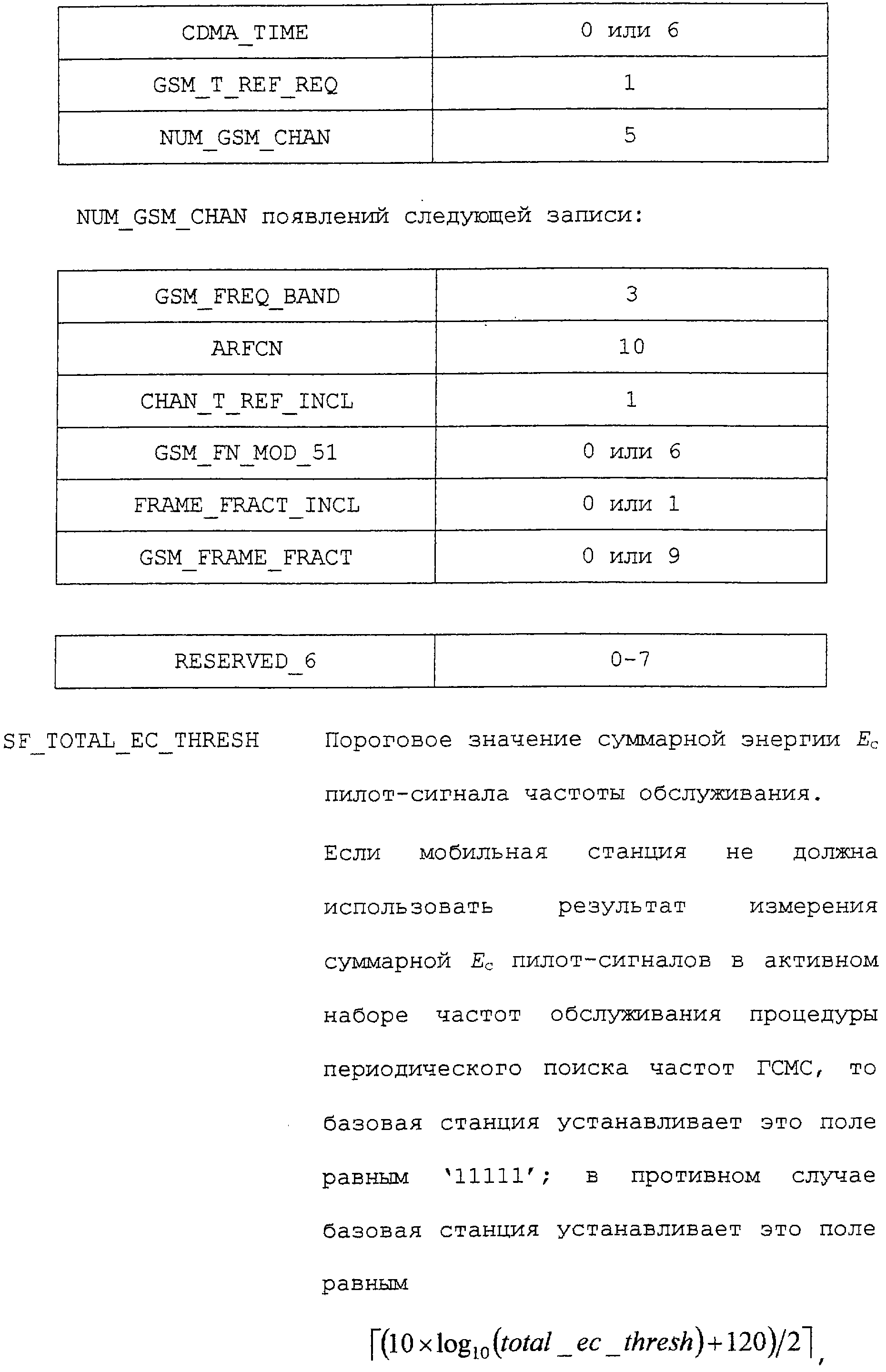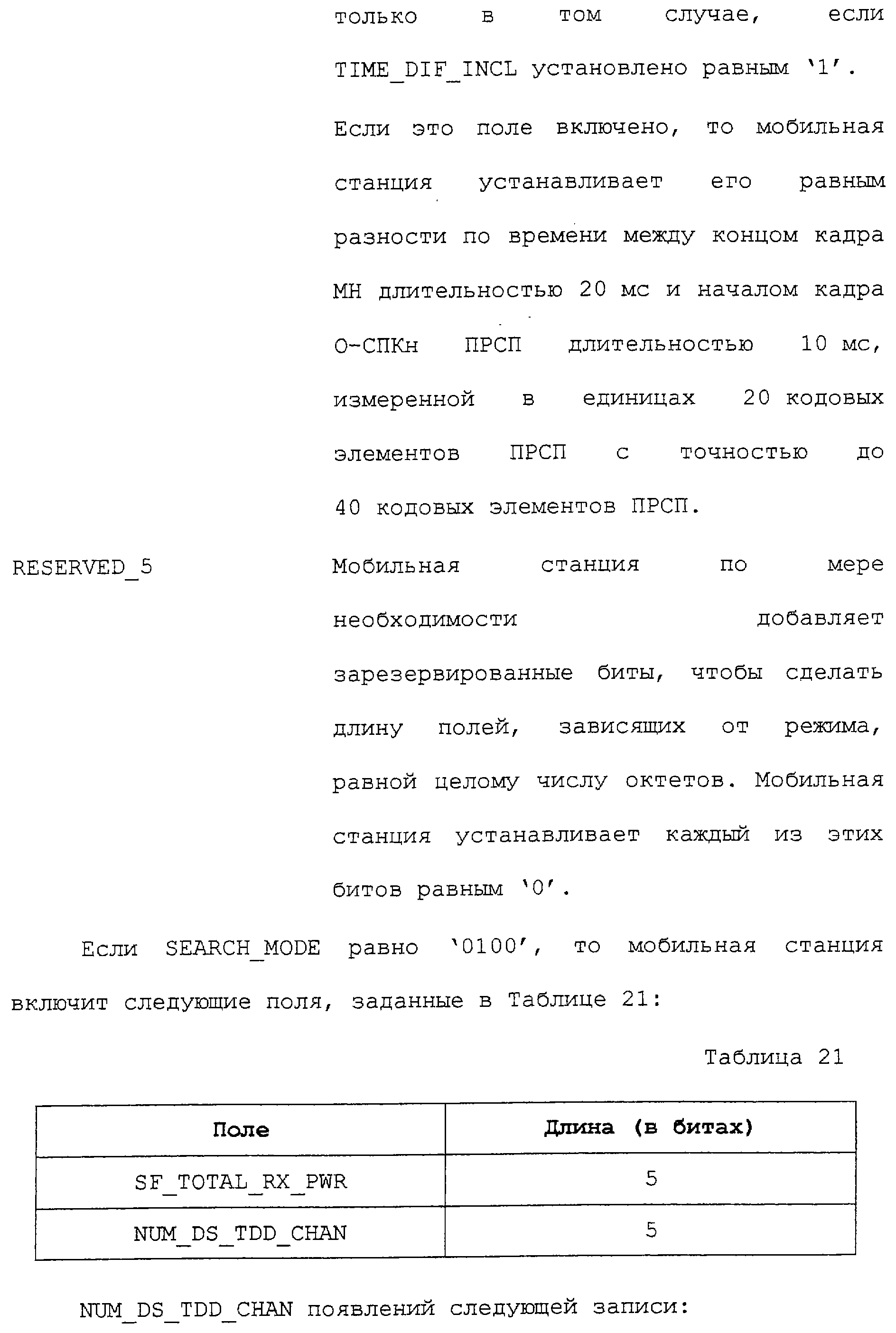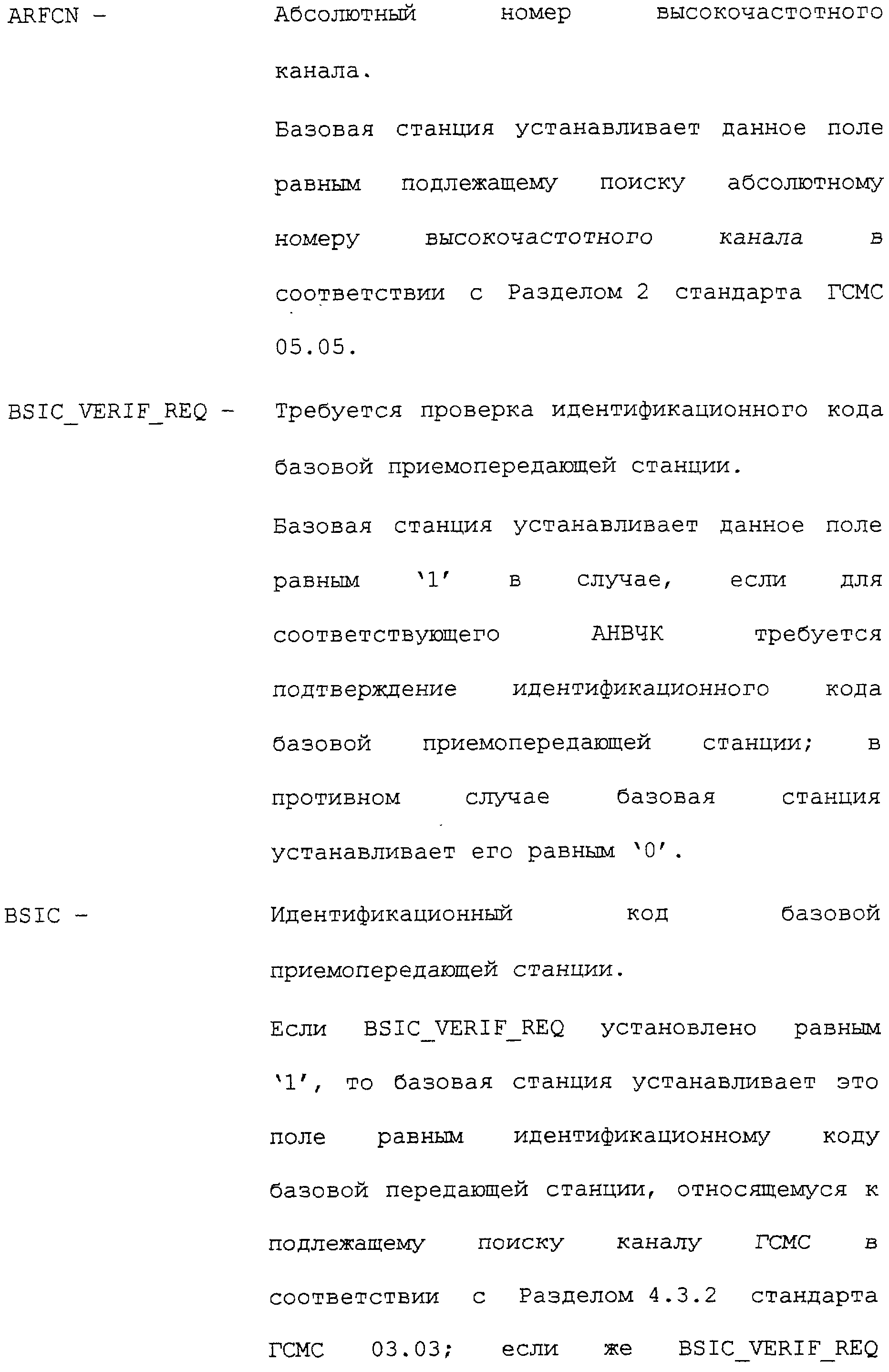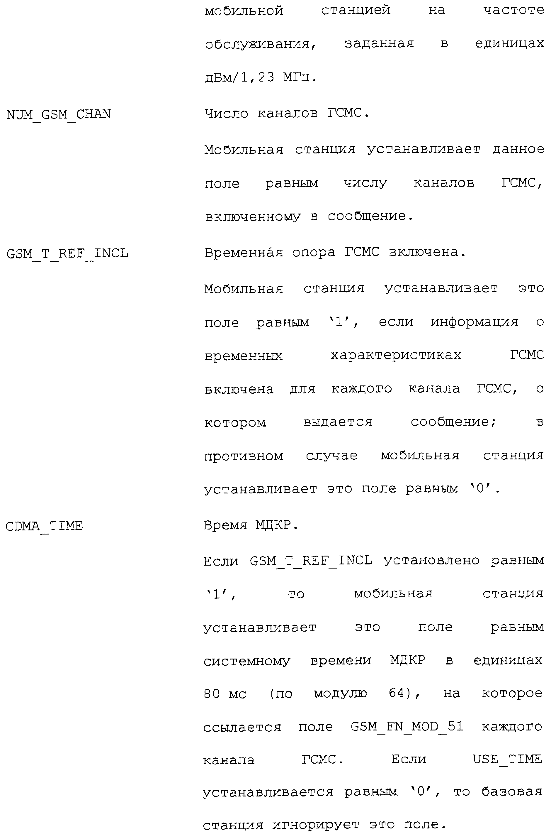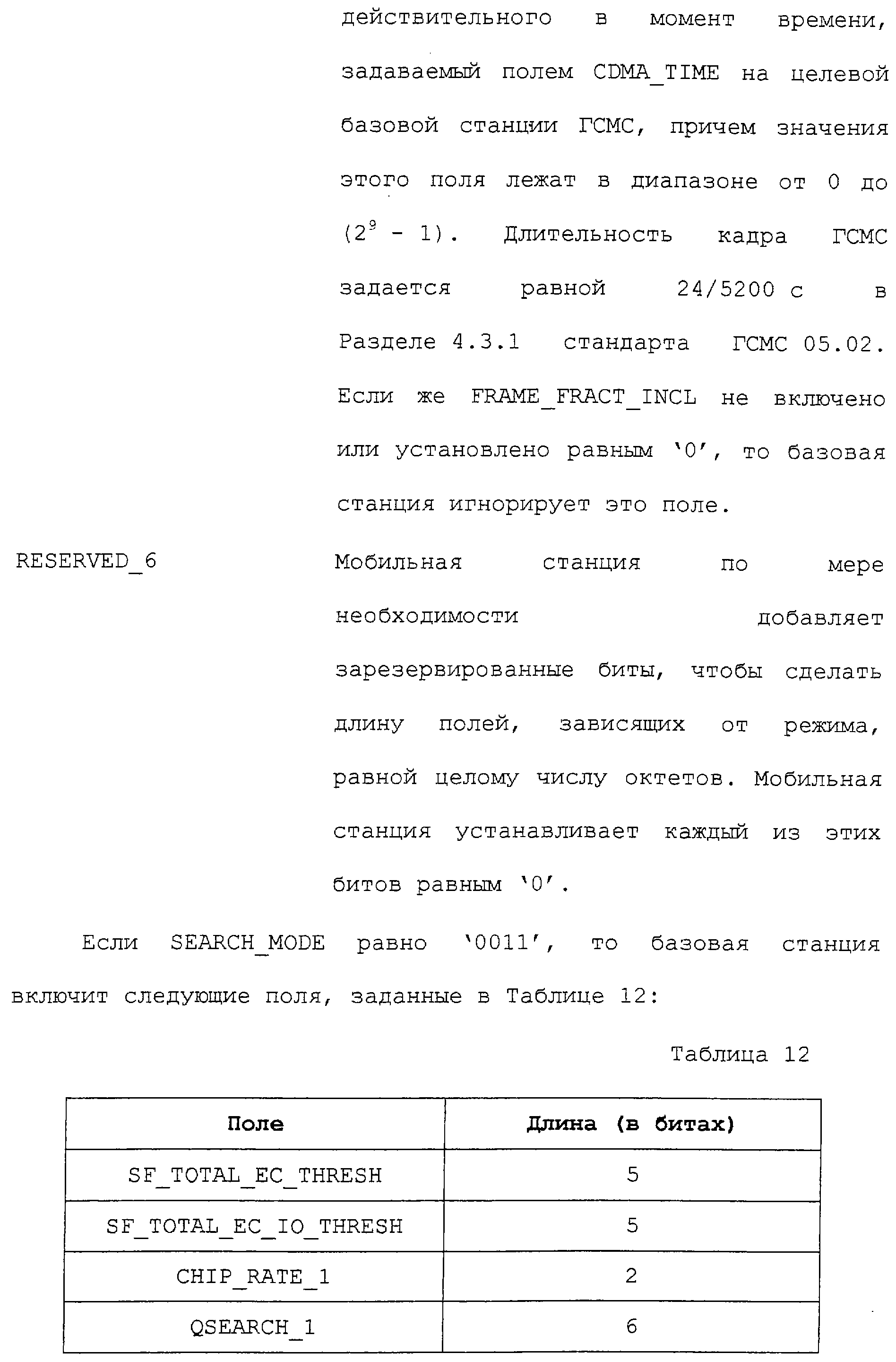 В соответствии с данным вариантом осуществления каждое из приведенных полей определено промышленным стандартом на системы связи ГСМС. Однако в первом варианте осуществления описываемых способа и устройства определен дополнительный режим поиска. В этом дополнительном режиме поиска запрашивается поиск каналов ГСМС.