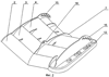 Изобретение поясняется с помощью чертежей, где на фиг.1 представлен общий вид донной траловой доски, на фиг.2 – вид сзади донной траловой доски, на фиг.3 – общий вид пелагической траловой доски, на фиг.4 – вид сзади пелагической траловой доски.