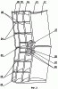 Распорная донная траловая доска Вантеева (см. фиг.1) содержит нижнее крыло 1, верхнее крыло 2 и два промежуточных крыла 3 и 4. Все крылья соединены в единую конструкцию посредством параллельно ориентированных продольных ребер: боковых 5 и 6 и центрального 7, обеспечивающих аэродинамический профиль крыльев 1-4. Крылья 1, 2, 3 и 4 расположены ступенчато друг над другом с разными межкрыловыми промежутками. Удлинение крыльев 1-4 различно и составляет в соотношении длины крыльев к их ширине от 1:1,3 до 1:4,4. Относительная суммарная площадь сочлененных крыльев доски в 1,4-1,5 раз больше по сравнению с линейной площадью доски, определяемой в соответствии с ее линейными размерами. Например, при линейных размерах 1,36×1,47 доски ее площадь составляет 2,0 м2, а суммарная площадь сочлененных крыльев 1-4 составляет 3,2 м2. Каналы между крыльями 1-4 разбиты на участки, образованные центральным продольным ребром 7, дополнительным направляющим ребром-стабилизатором 8 и крепежными силовыми пластинами 9. Крепежные силовые пластины 9 расположены симметрично относительно центрального ребра 7 и разбивают каналы на участки между нижним 1 и промежуточными 3, 4 крыльями.