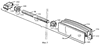 Как показано на фиг.2-4 и 6-7, верхний раздвижной узел 52 включает в себя гайку 62, вал с резьбой 64 и защелкивающийся зажим 66. Размеры гайки 62 подобраны таким образом, что один ее конец плотно входит в конец верхней направляющей 44 при прессовой посадке. Гайка 62, таким образом, закупоривает конец верхней направляющей 44, не позволяя скользящим элементам 36 выкатываться с дорожек 40 и 42. Гайка 62 снабжена буртиками, не позволяющими ей слишком далеко вдавливаться в верхнюю направляющую 44. Гайка 62 содержит осевой сквозной канал 68 с внутренней резьбой, совместимый с резьбой ACME (прямоугольной), выполненной по периферии вала 64. Вал 64 имеет радиальное отверстие 70, предназначенное для рычага определенного рода (такого, как отвертка или шестигранный ключ), посредством которого можно вращать вал 64. При желании отверстие 70 можно заменить шестигранным участком, предназначенным для вращения вала 64 гаечным ключом. Один конец вала 64 представлен кругом 72, который можно вдавить мимо выступа 74 в осевую выемку 76 зажима 66, так что он защелкивается на конце вала 64. Зажим 66 содержит также отходящую вниз лапку 78, которая входит в зацепление с внутренней поверхностью поперечного элемента 57 стенового косяка 30 и нескользящей прокладки 80, прилегающей к его наружной поверхности.