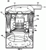 Как показано на фиг. 1, корпус 10 циклона содержит воздухозаборный канал, который здесь называется также воздушным впускным каналом 11, и воздушный выход или выпускной канал, который здесь называется воздушным выпускным каналом 12. Когда циклонный пылеуловитель 1 установлен в корпусе 2 пылесоса, воздушный впускной канал 11 соединен с воздушным проходом или каналом 3, который гидравлически соединен с входом всасывающей щетки (не показана). Воздушный выпускной канал 12 соединен с отверстием для выпуска воздуха (не показано) на верхней стороне корпуса 10 циклона. Воздушный выпускной канал 12 через воздухоотводящий проход гидравлически соединен с источником создания разрежения, имеющим привод от электродвигателя и расположенным с ним в камере 5 в корпусе 2 пылесоса.