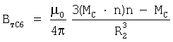 По известным магнитному моменту тела, например МС, и радиус-вектору между центром 0 и точкой 6, т.е. R06=R2n, можно рассчитать дипольное поле тела в точке 6