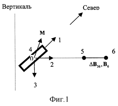 В56 – приращение индукции магнитного поля модели 4 между точками 5 и 6 – показания компонент измерительных каналов модельного дифференциального магнитометра, необозначенного на фиг.1 для простоты рисунка, Тл.