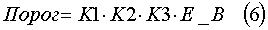 d3) изменение коэффициента К2 в уравнении Порог=К1·К2·Е_В с учетом информации, полученной на этапе d2;