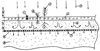 На чертеже изображен разрез золоотвала, где 1 – многолетние травы; 2 – кустарники; 3 – деревья; 4 – слой грунта; 5 – осадки (дождь, снег); 6 – просочившаяся в золоотвал вода и задержавшаяся в 1,0-1,5 м слое золошлаковых отходов; 7 – профильтровавшаяся вода; 8 – золошлаковые отходы; 9 – водоудерживающая прослойка.