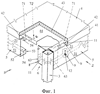 В общем, соединительный узел 6 содержит по меньшей мере два крыла 63, расположенных на расстоянии друг от друга и под углом друг к другу, как правило, под прямым углом друг к другу. Каждое крыло может быть соединено с поперечинами 5 с помощью вторых соединительных средств 8. Как показано более детально на фиг.6 и 7, соединительный узел 6 предпочтительно содержит по меньшей мере две пластины 64 и 65, расположенные одна на другой и плотно сочлененные друг с другом, причем одна внутренняя пластина 64 и одна наружная пластина 65 образуют по существу элемент жесткости. Обе пластины выполнены фасонными и согнуты так, что они имеют первую часть 61, по меньшей мере частично соответствующую части стойки 3, и вторую часть 62, определяющую по меньшей мере два крыла 63, которые расположены на расстоянии друг от друга и под углом друг к другу, и каждое из которых может быть соединено с поперечинами 5 вторыми соединительными средствами 8.