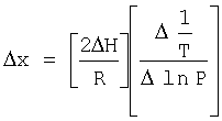 вычисляют изменение количества водорода, используя дифференциальную форму зависимости Вант-Гоффа